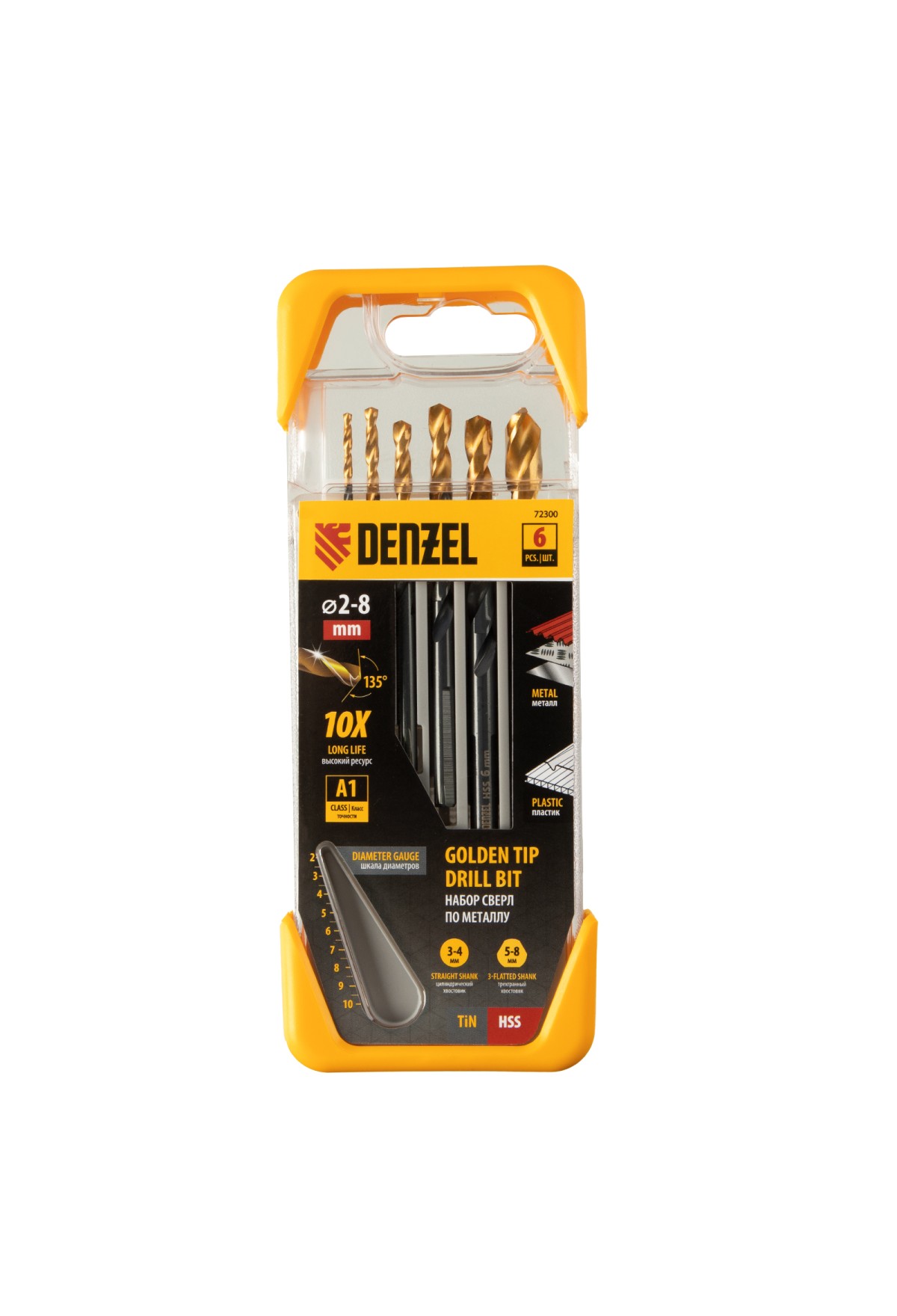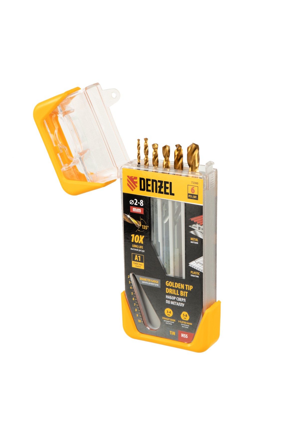 Набор Denzel Golden Tip 72300 включает 6 сверл по металлу диаметром 2, 3, 4, 5, 6 и 8 мм, предназначенных для сверления отверстий в заготовках из сталей различной твердости. Оснастке присвоен класс точности A1: оптимальная геометрия вышлифованных профилей обеспечивает высокую точность полученных отверстий. Сверла упакованы в пластиковый кейс, в крышке которого имеется удобный шаблон для быстрого определения диаметра. Набор будет полезен дома и в слесарной мастерской.