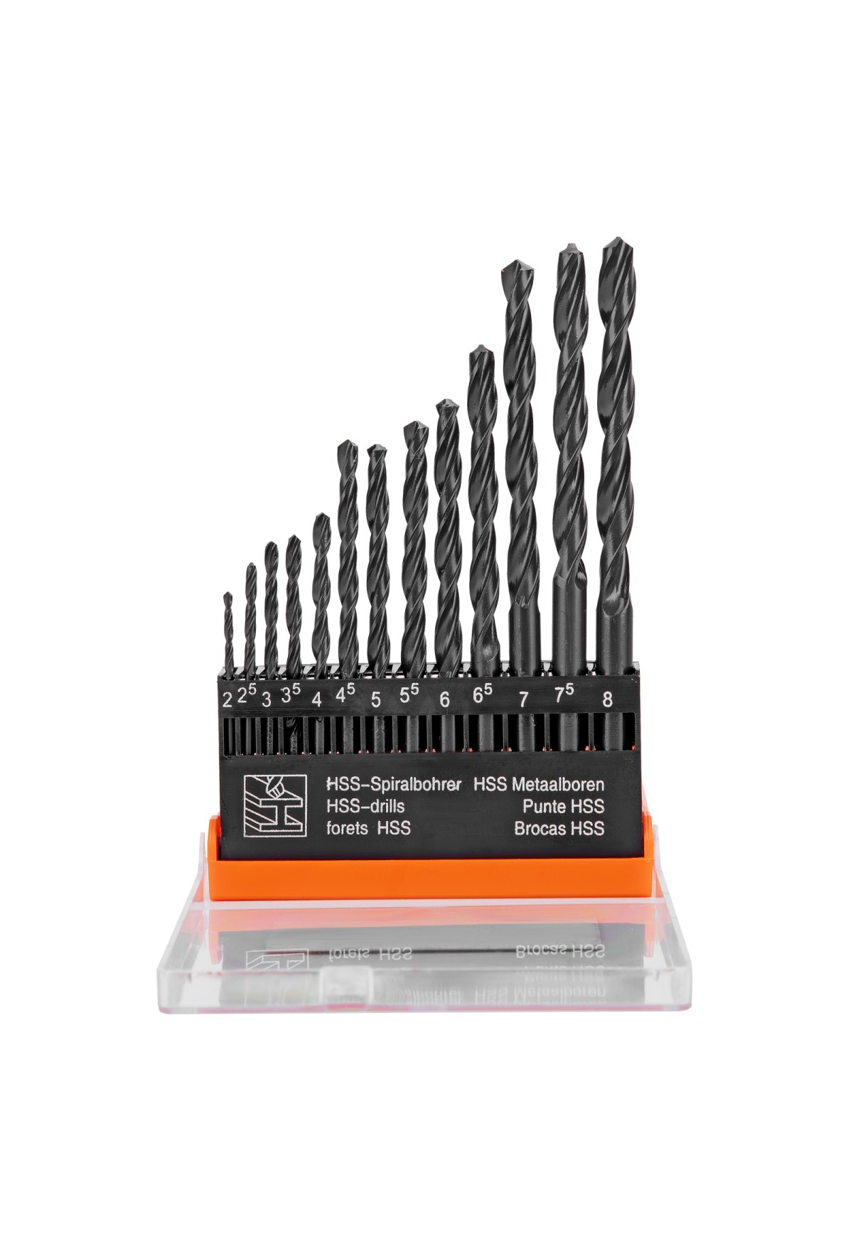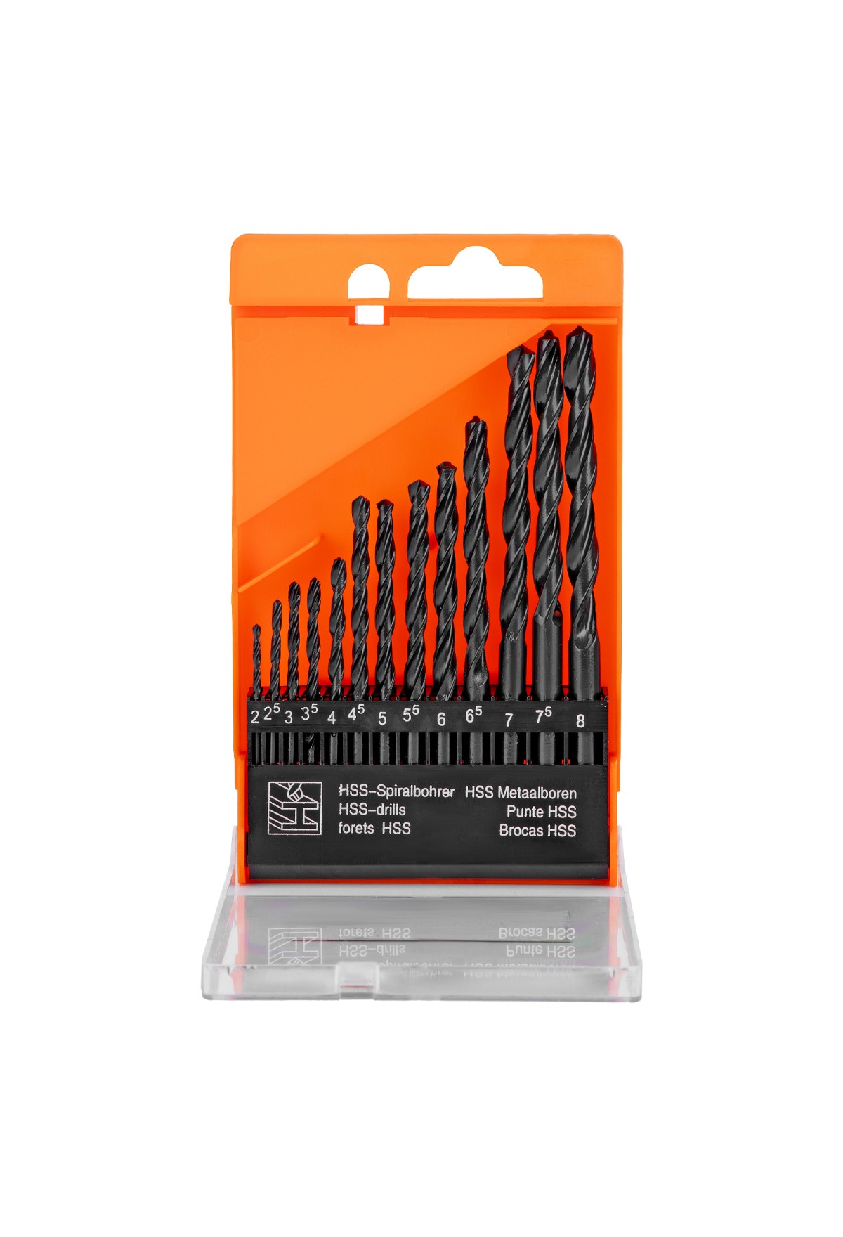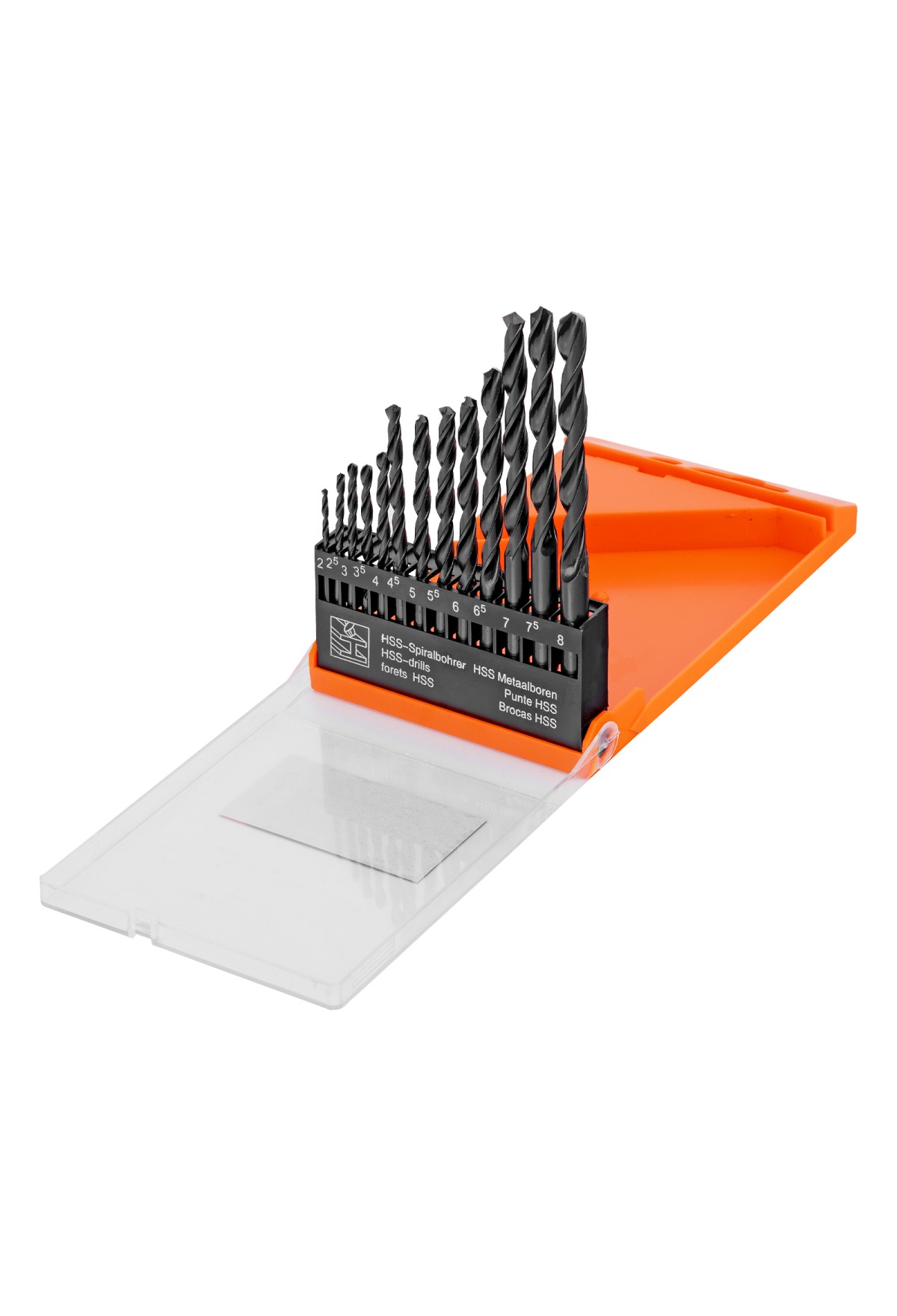 Комплектация Сверло по металлу 2, 2,5, 3, 3,5, 4, 4,5, 5, 5,5, 6, 6,5, 7, 7,5, 8 - 13 штПластиковый кейс - 1 шт