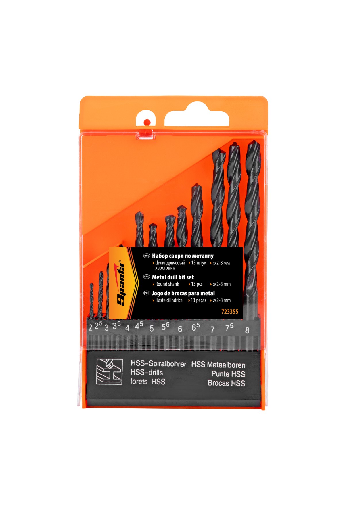 Технические характеристики Набор сверл по металлу, 2-8 мм, (через 0.5 мм), HSS, 13 шт, цилиндрический хвостовик Sparta