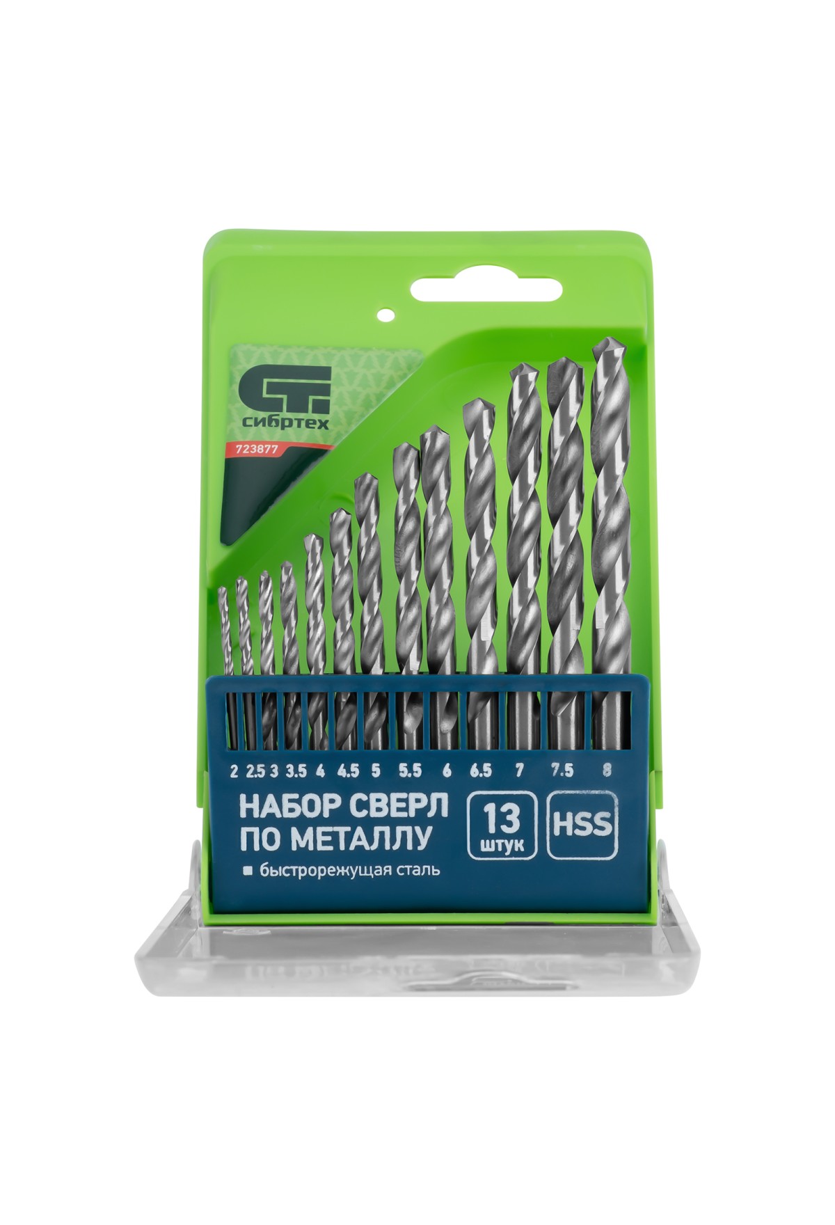 Технические характеристики Набор сверл по металлу, 2-8 мм, (через 0.5 мм), HSS, 13 шт, пластиковая коробка, цилиндрический хвостовик Сибртех