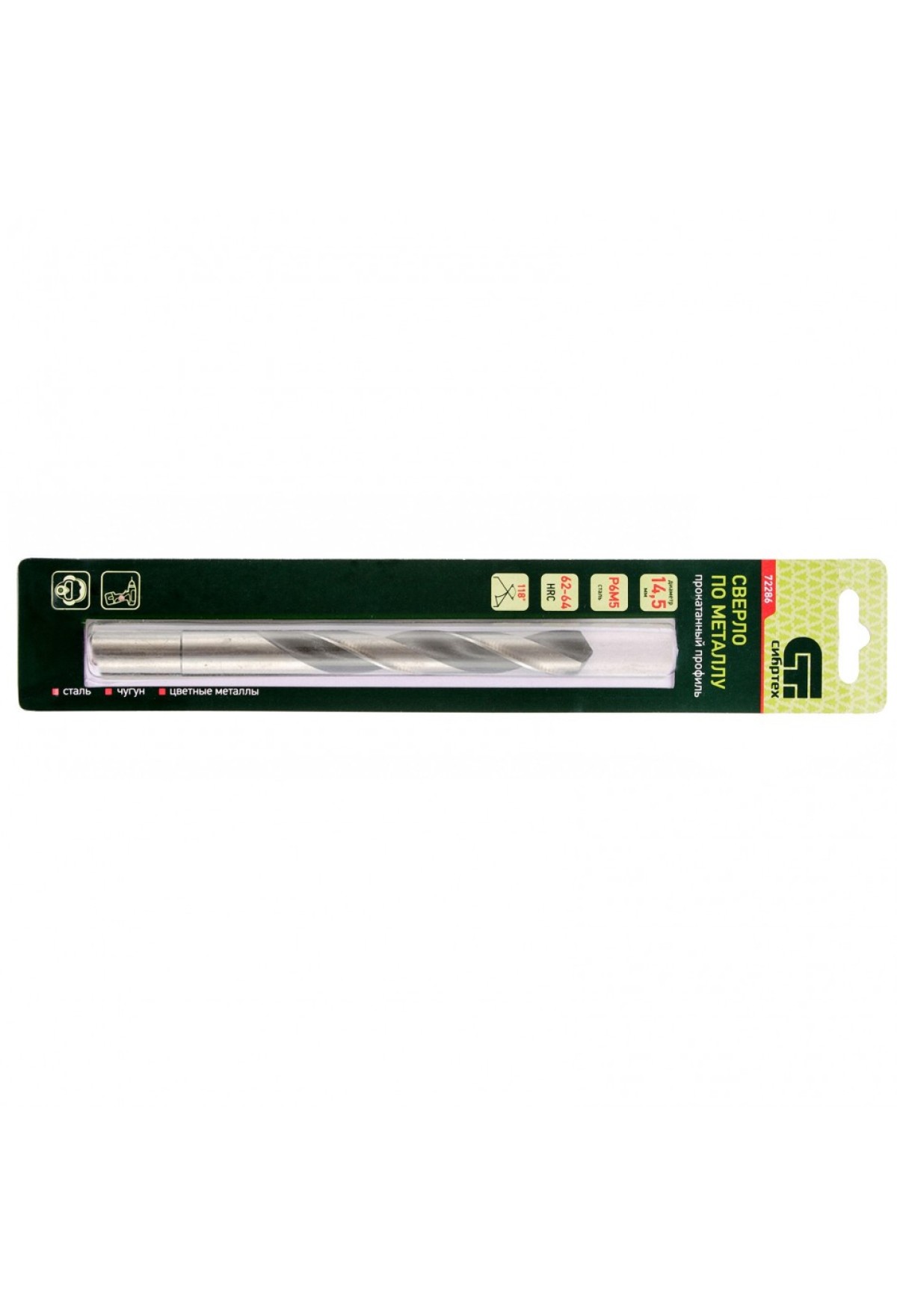 Технические характеристики Сверло по металлу, 14.5 мм, Р6М5 Сибртех