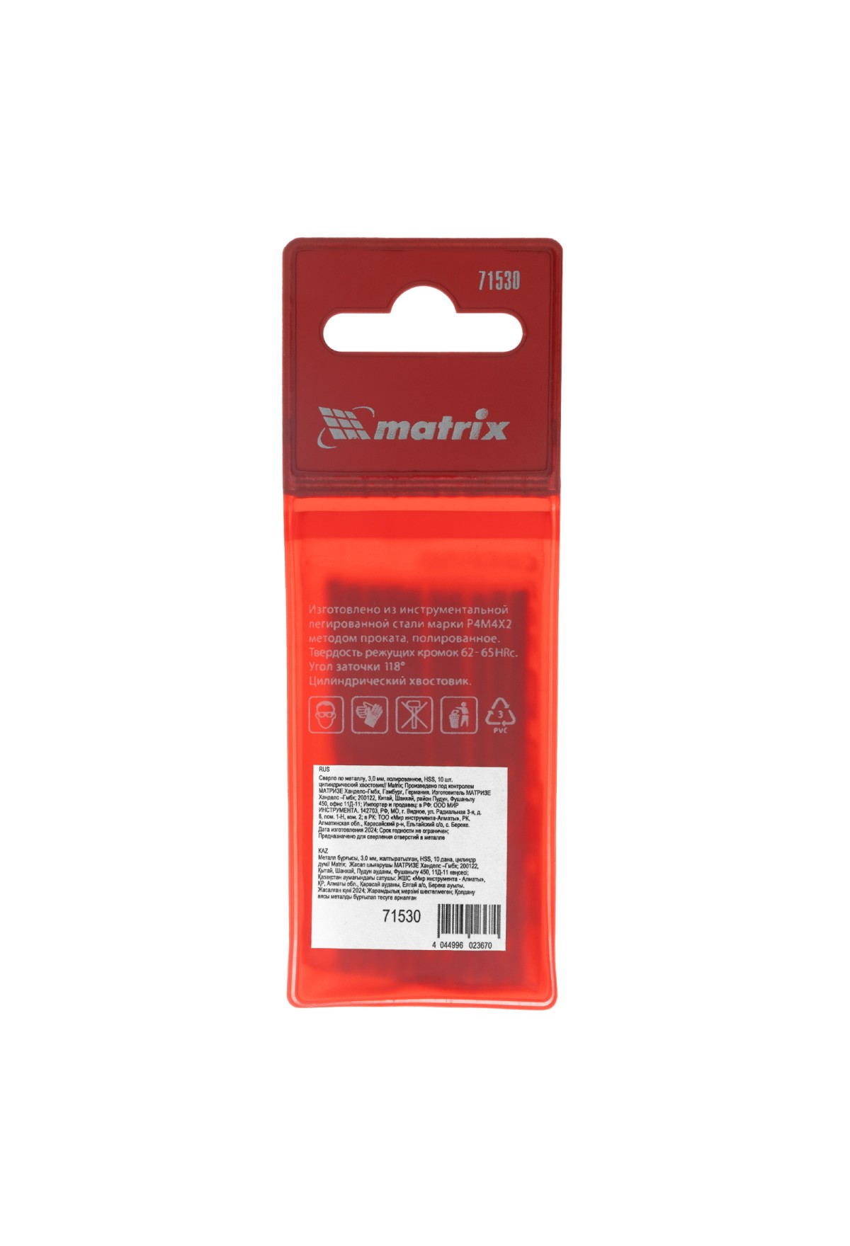 Технические характеристики Сверло по металлу, 3 мм, полированное, HSS, 10 шт, цилиндрический хвостовик Matrix