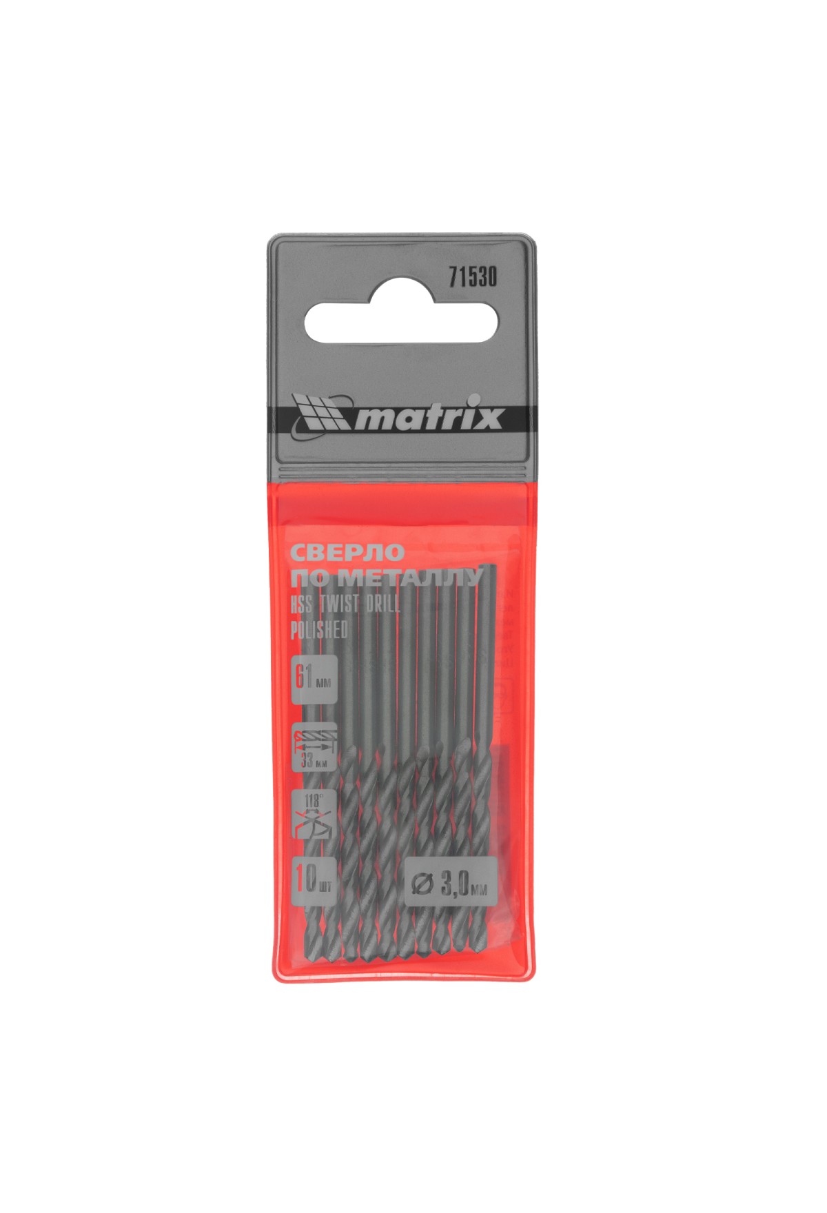 Сверло по металлу, 3 мм, полированное, HSS, 10 шт, цилиндрический хвостовик Matrix
