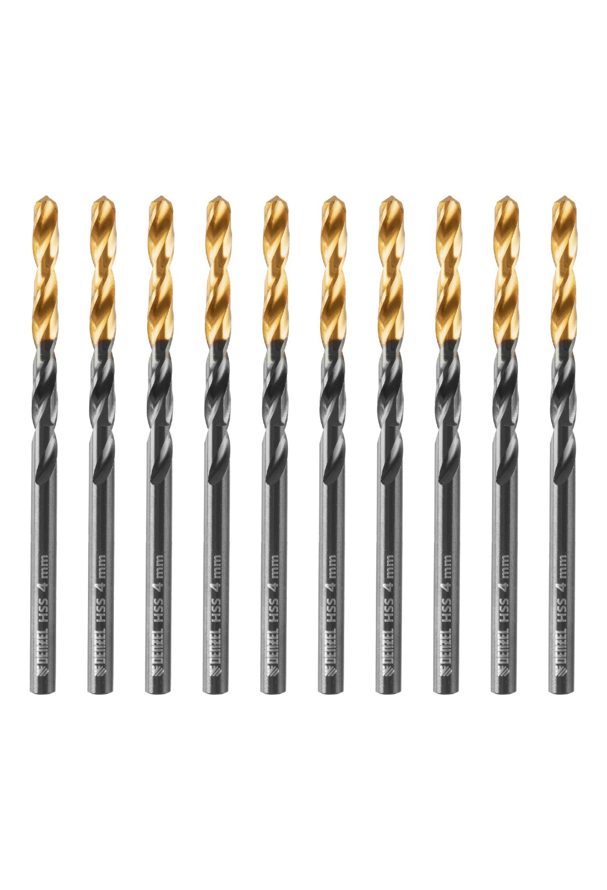 Набор сверл по металлу, 1-10 мм, Р6М5-TiN, Golden Tip, 19 шт Denzel