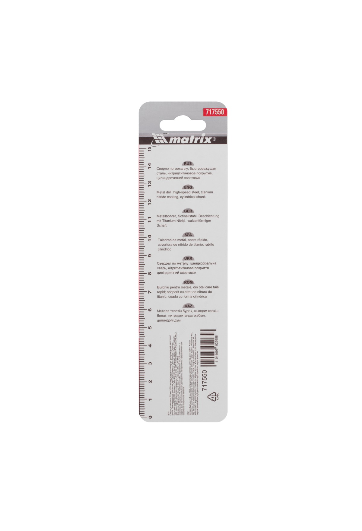 Сверло по металлу, 5.5 мм, HSS, нитридтитановое покрытие, цилиндрический хвостовик Matrix