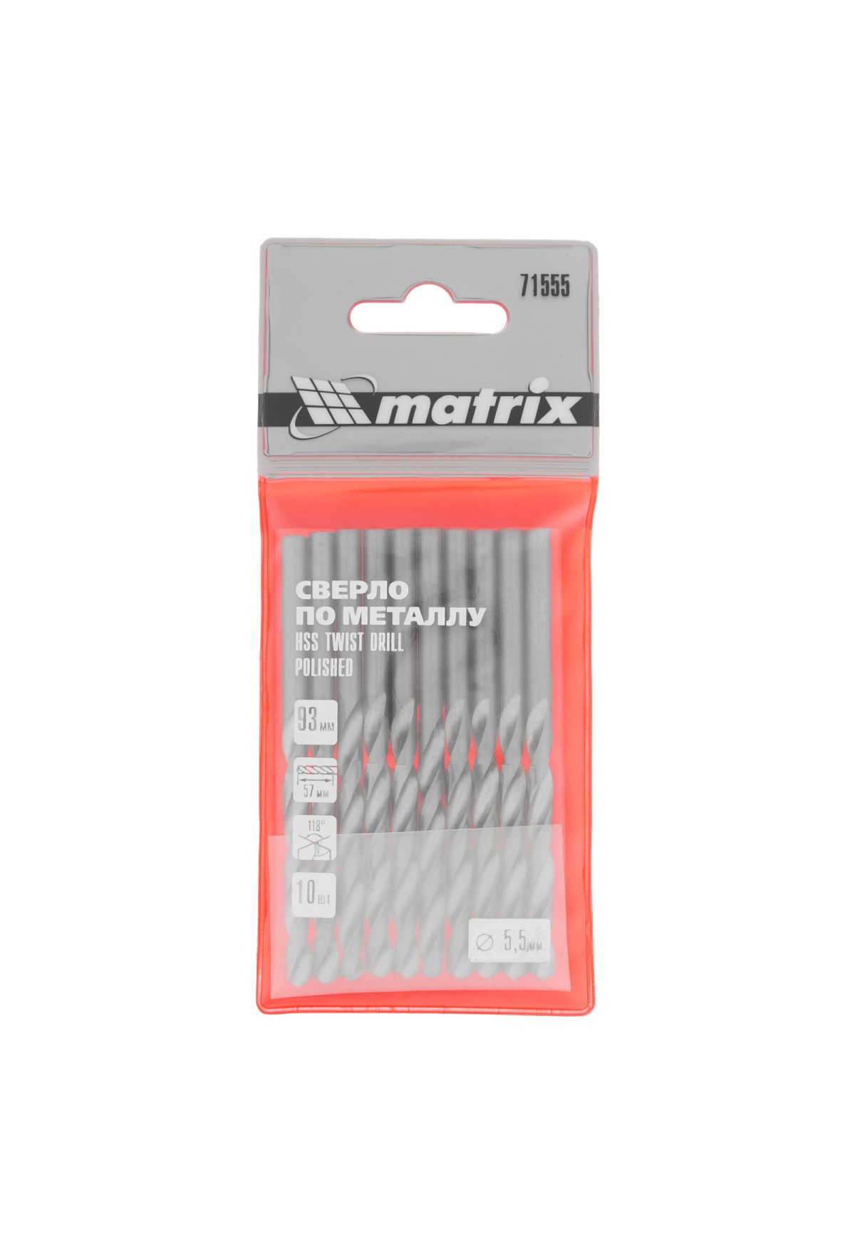 Технические характеристики Сверло по металлу, 5.5 мм, полированное, HSS, 10 шт, цилиндрический хвостовик Matrix