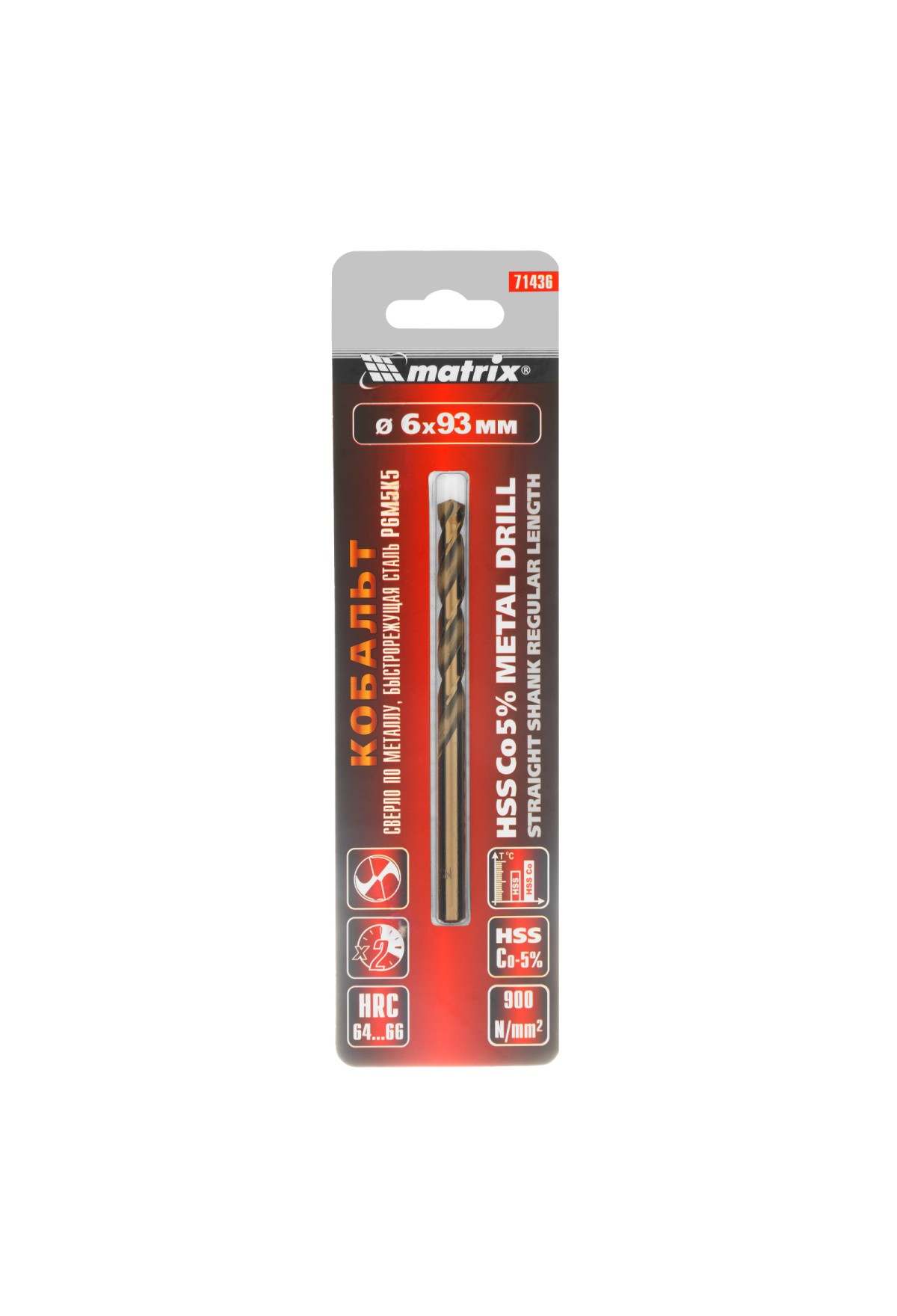 Сверло Matrix 71436 диаметром 6 мм, из стали HSS Co-5%, имеет угол заточки 135°, оптимальный для сверления легированных и цветных металлов. Подходит для профессионального использования на строительной площадке.