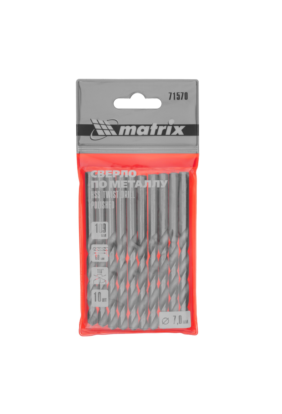 Полированное сверло по металлу Matrix 71570 из стали HSS, с цилиндрическим хвостовиком, 10 шт. в упаковке, используется для получения отверстий диаметром 7,0 мм. Угол заточки составляет 118 градусов, поэтому сверло оптимально для работы с черными металлами, сталью, чугуном и твердой бронзой.
