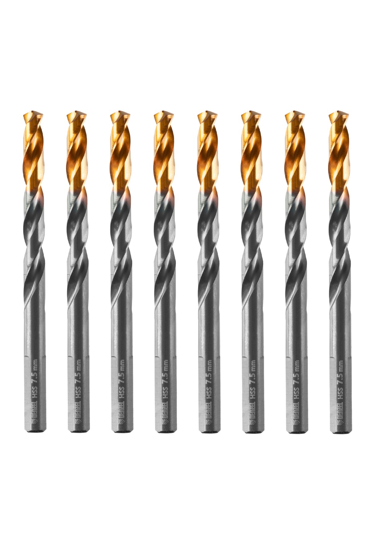 Сверло по металлу, 7,5 мм, HSS-Tin, Golden Tip, 8 шт. Denzel