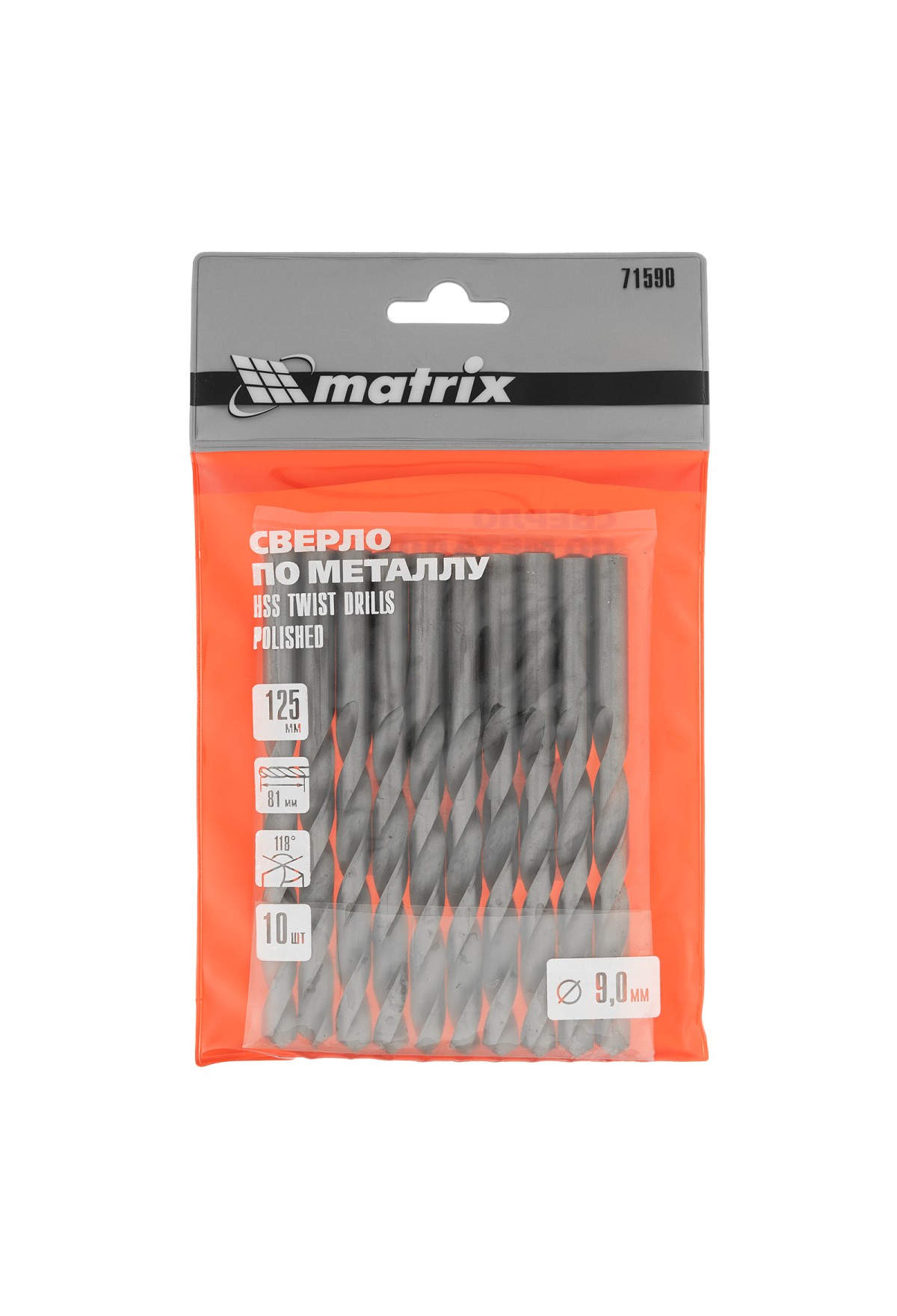 Технические характеристики Сверло по металлу, 9 мм, полированное, HSS, 10 шт, цилиндрический хвостовик Matrix