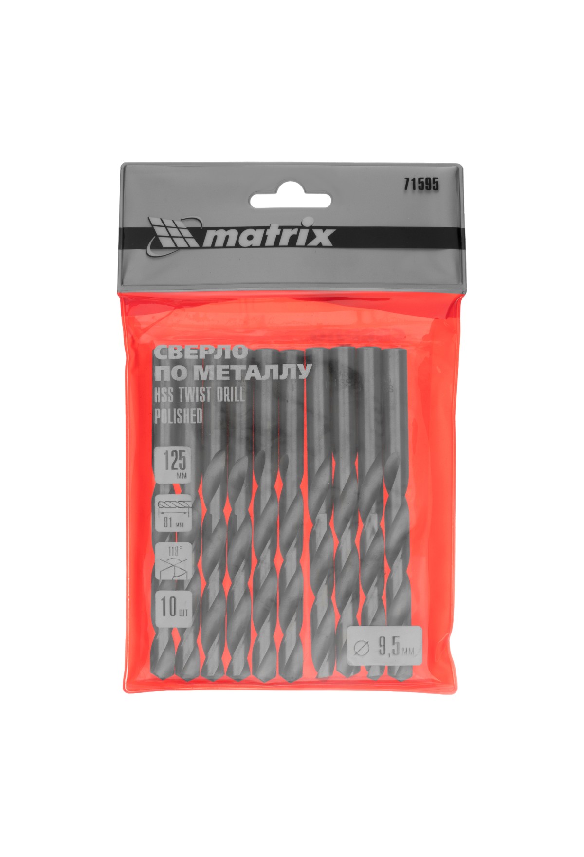 Технические характеристики Сверло по металлу, 9.5 мм, полированное, HSS, 10 шт, цилиндрический хвостовик Matrix