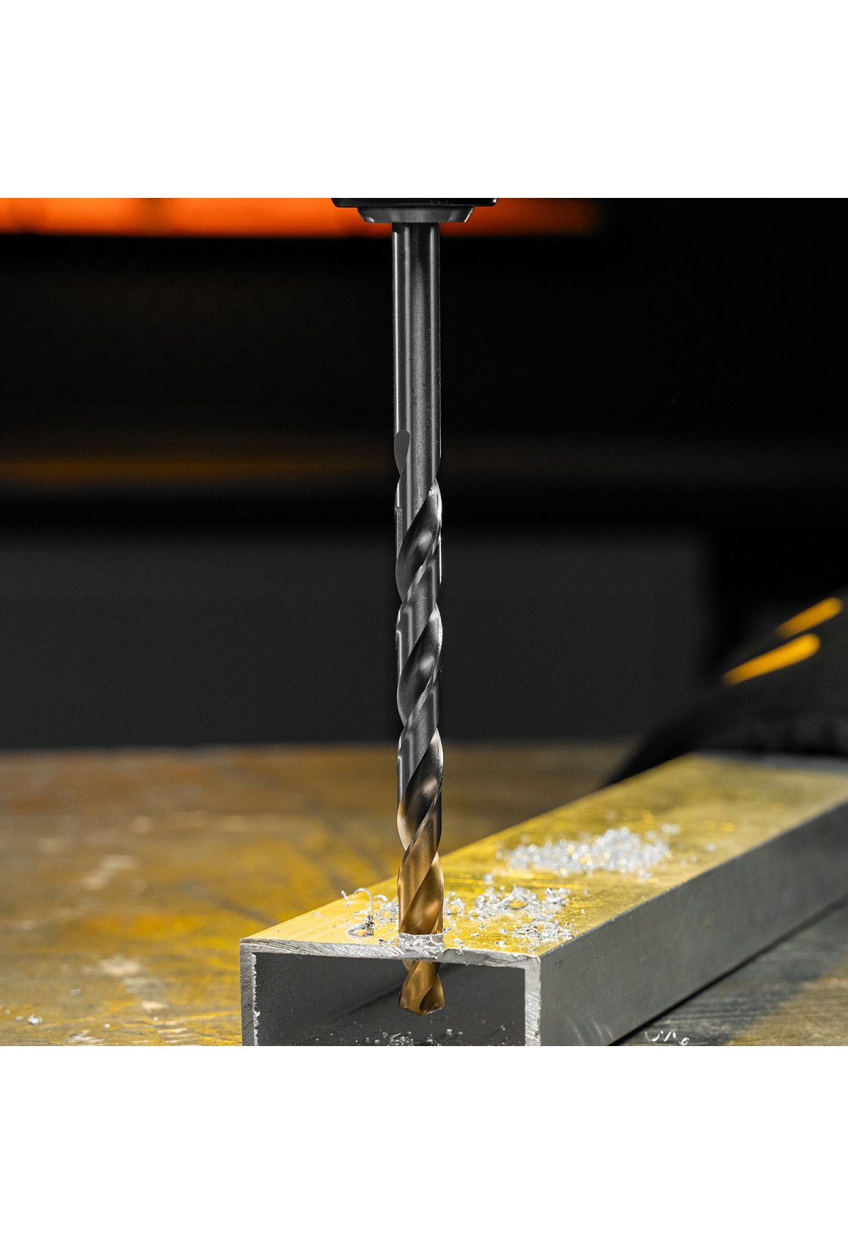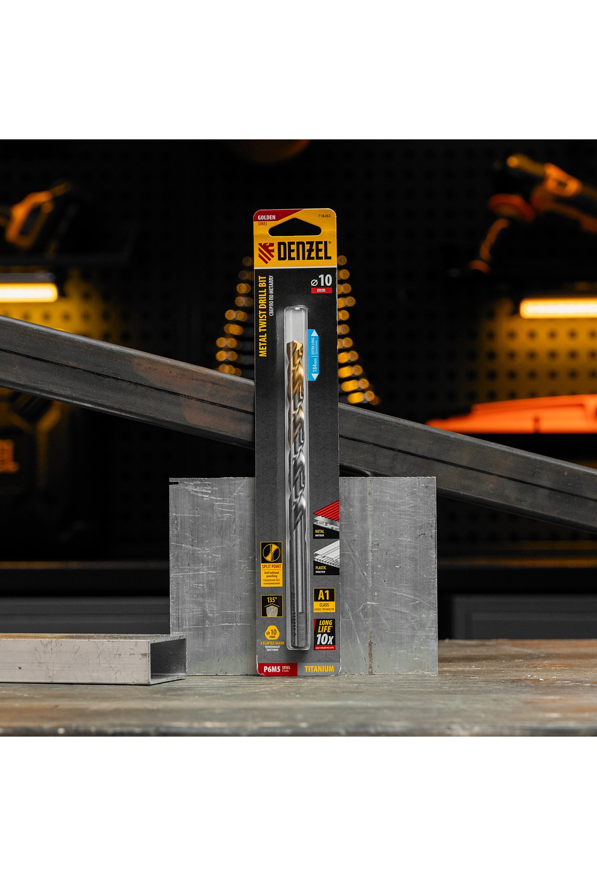 Удлиненное спиральное сверло по металлу Denzel Golden Tip 718263 из стали P6M5, размером 10 х 184 мм, предназначено для получения отверстий в легированных и цветных металлах — меди, алюминии, мягкой бронзе, титане, латуни. Оснастка позволяет эффективно справляться с этими задачами благодаря оптимальному углу заточки 135°. Класс точности A гарантирует высокое качество работ, а удлиненный профиль позволяет сверлить глубокие отверстия. Сверло используется для проведения монтажно-сборочных работ.