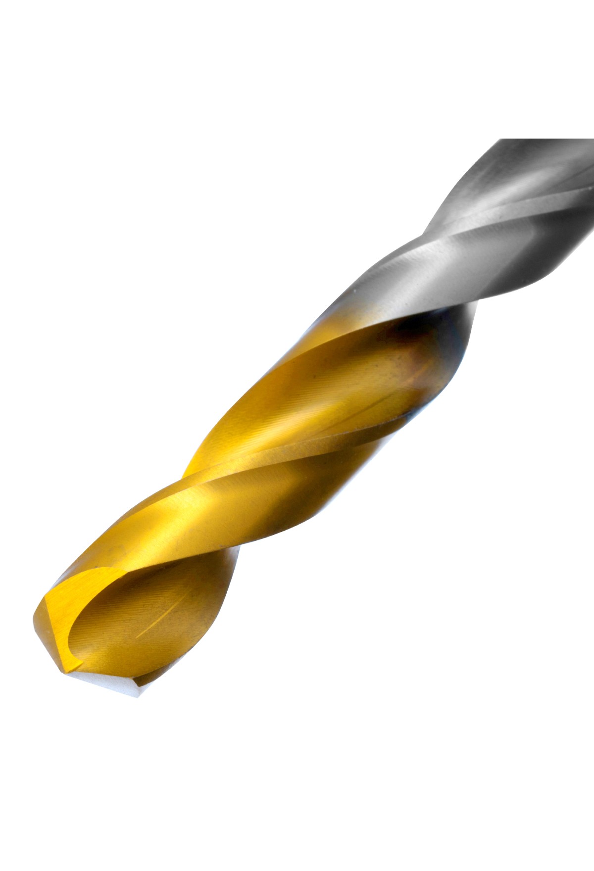 - Высокая производительность — поверхность сверла покрыта нитридом титана, что снижает трение о стенки отверстия и уменьшает нагрев, а также улучшает отвод стружки.
