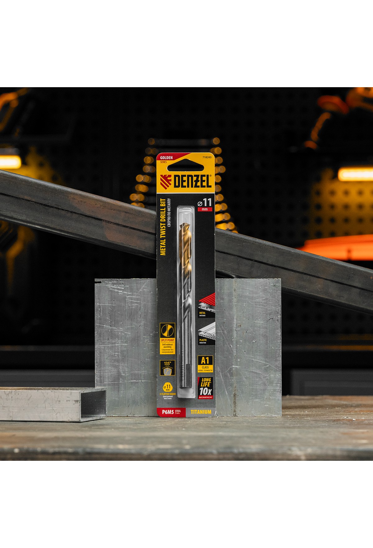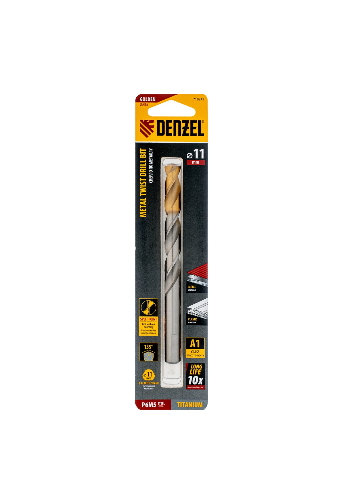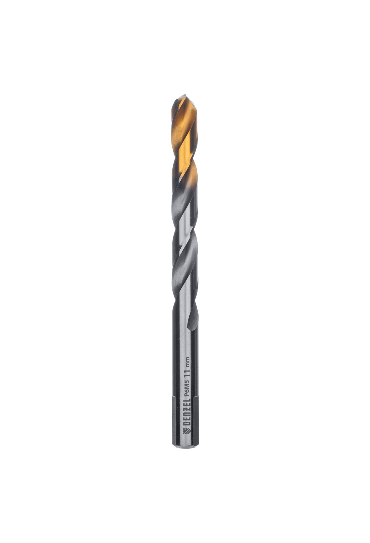 Спиральное сверло по металлу Denzel Golden Tip 718243 из стали P6M5, размером 11 х 142 мм, предназначено для получения отверстий в легированных и цветных металлах — меди, алюминии, мягкой бронзе, титане, латуни. Оснастка позволяет эффективно справляться с поставленными задачами благодаря оптимальному углу заточки 135°. Класс точности A гарантирует высокое качество полученных отверстий. Сверло используется для проведения монтажно-сборочных работ.