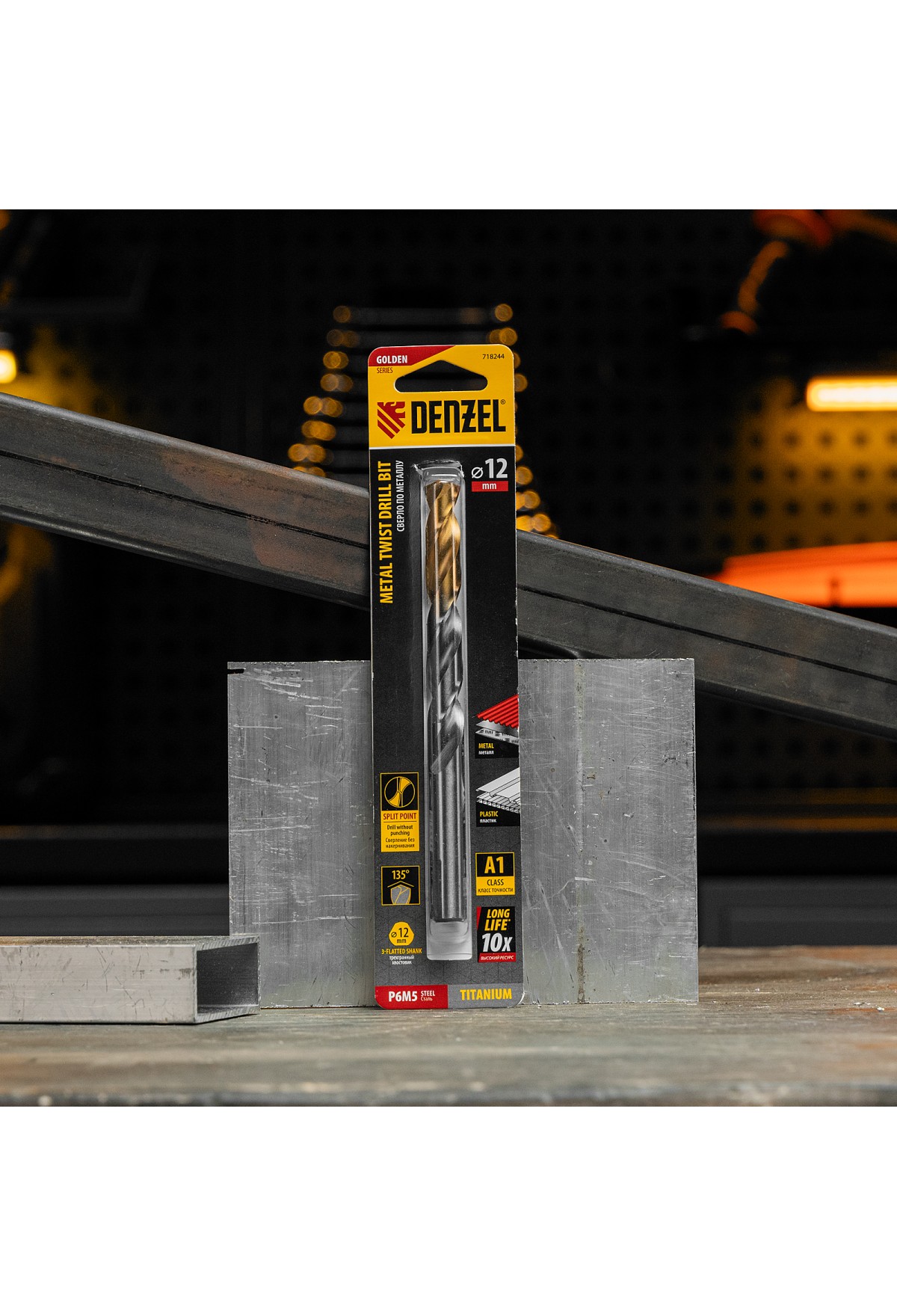 Спиральное сверло по металлу Denzel Golden Tip 718244 из стали P6M5, размером 12 х 151 мм, предназначено для получения отверстий в легированных и цветных металлах — меди, алюминии, мягкой бронзе, титане, латуни. Оснастка позволяет эффективно справляться с поставленными задачами благодаря оптимальному углу заточки 135°. Класс точности A гарантирует высокое качество полученных отверстий. Сверло используется для проведения монтажно-сборочных работ.