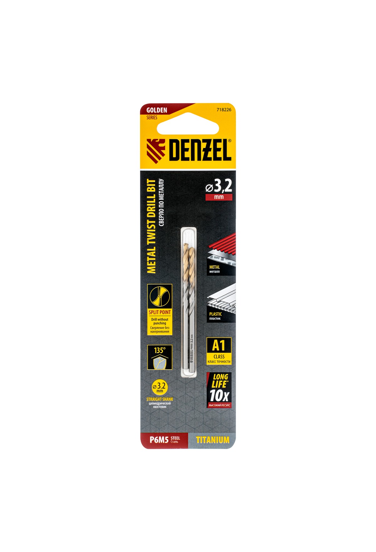 • Сверло спиральное по металлу 3,2 x 65 мм, Р6М5, Golden Tip , 2шт. Denzel