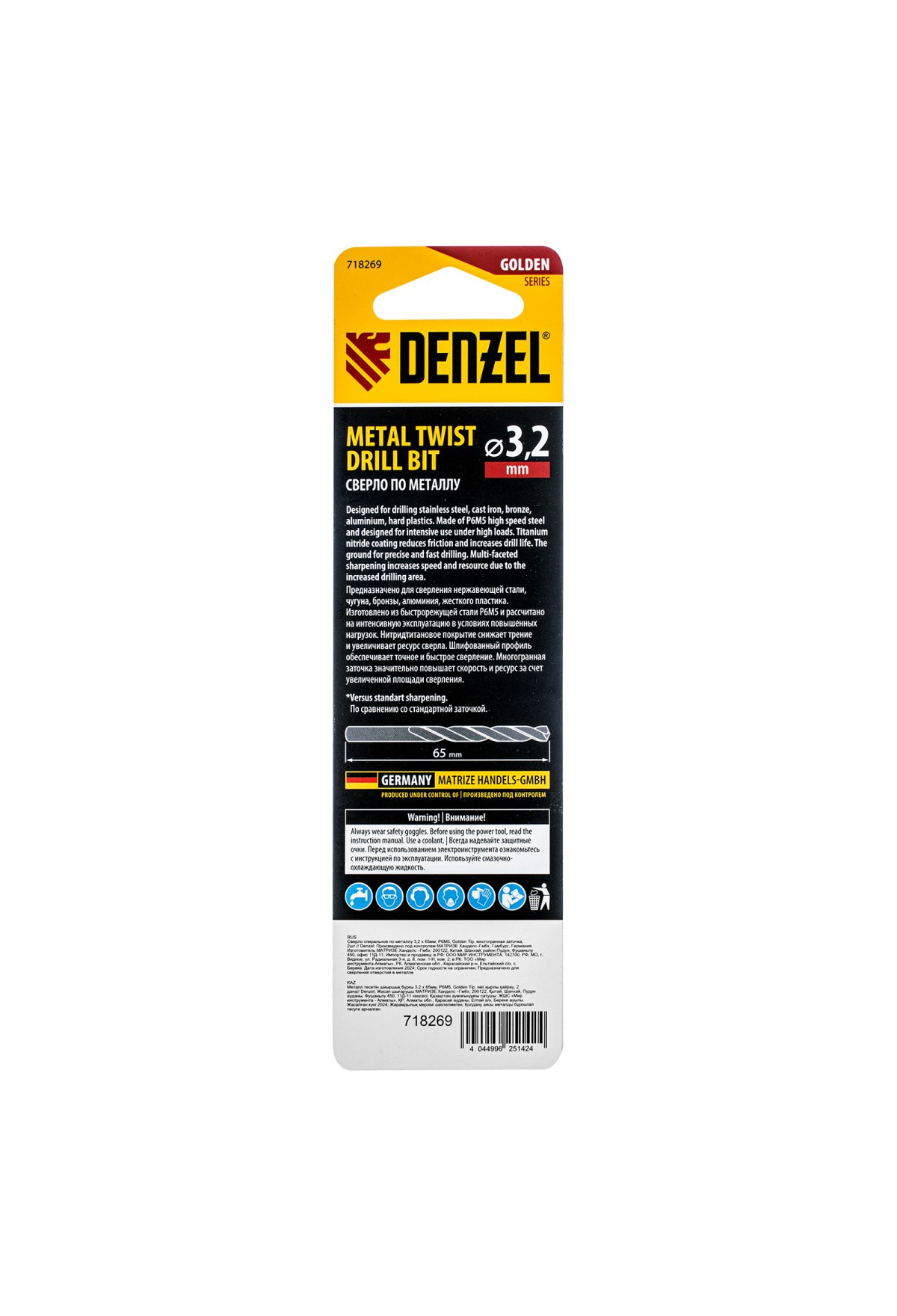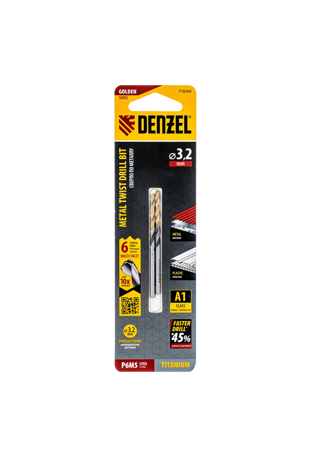 Тэги: Сверло спиральное по металлу 3, 2 x 65мм, Р6М5, Golden Tip, многогранная заточка, 2шт. Denzel, VR6-718269, DENZEL, VR6, VR6-Режущий инструмент, VR6-Сверла