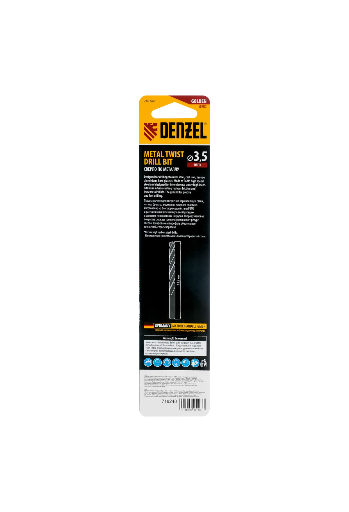 Тэги: Сверло спиральное по металлу 3, 5 х 112 мм, Р6М5, Golden Tip, удлиненное, 2шт. Denzel, VR6-718248, DENZEL, VR6, VR6-Режущий инструмент, VR6-Сверла