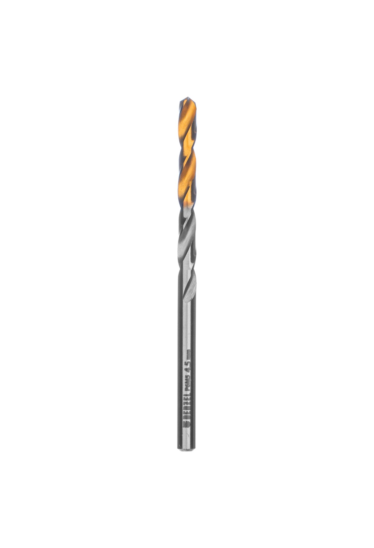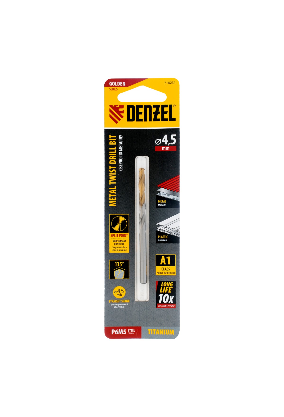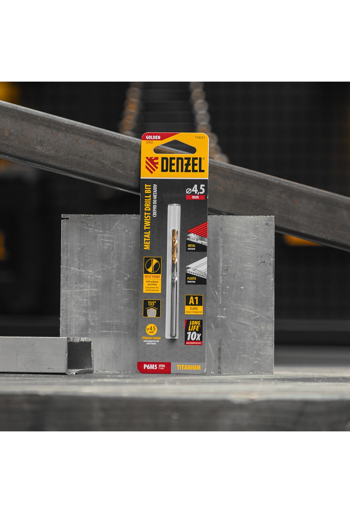 Спиральное сверло по металлу Denzel Golden Tip 718231 из стали P6M5, размером 4,5 х 80 мм, предназначено для получения отверстий в легированных и цветных металлах — меди, алюминии, мягкой бронзе, титане, латуни. Оснастка позволяет эффективно справляться с поставленными задачами благодаря оптимальному углу заточки 135°. Класс точности A гарантирует высокое качество полученных отверстий. Сверло используется для проведения монтажно-сборочных работ.
