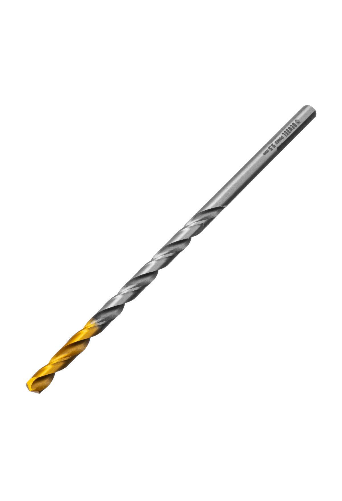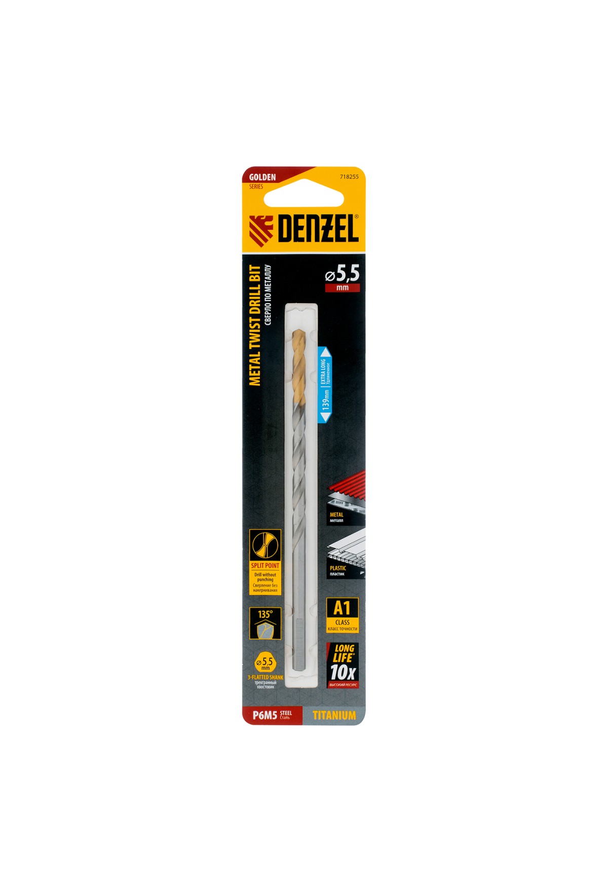 Удлиненное спиральное сверло по металлу Denzel Golden Tip 718255 из стали P6M5, размером 5,5 х 139 мм, предназначено для получения отверстий в легированных и цветных металлах — меди, алюминии, мягкой бронзе, титане, латуни. Оснастка позволяет эффективно справляться с этими задачами благодаря оптимальному углу заточки 135°. Класс точности A гарантирует высокое качество работ, а удлиненный профиль позволяет сверлить глубокие отверстия. Сверло используется для проведения монтажно-сборочных работ.