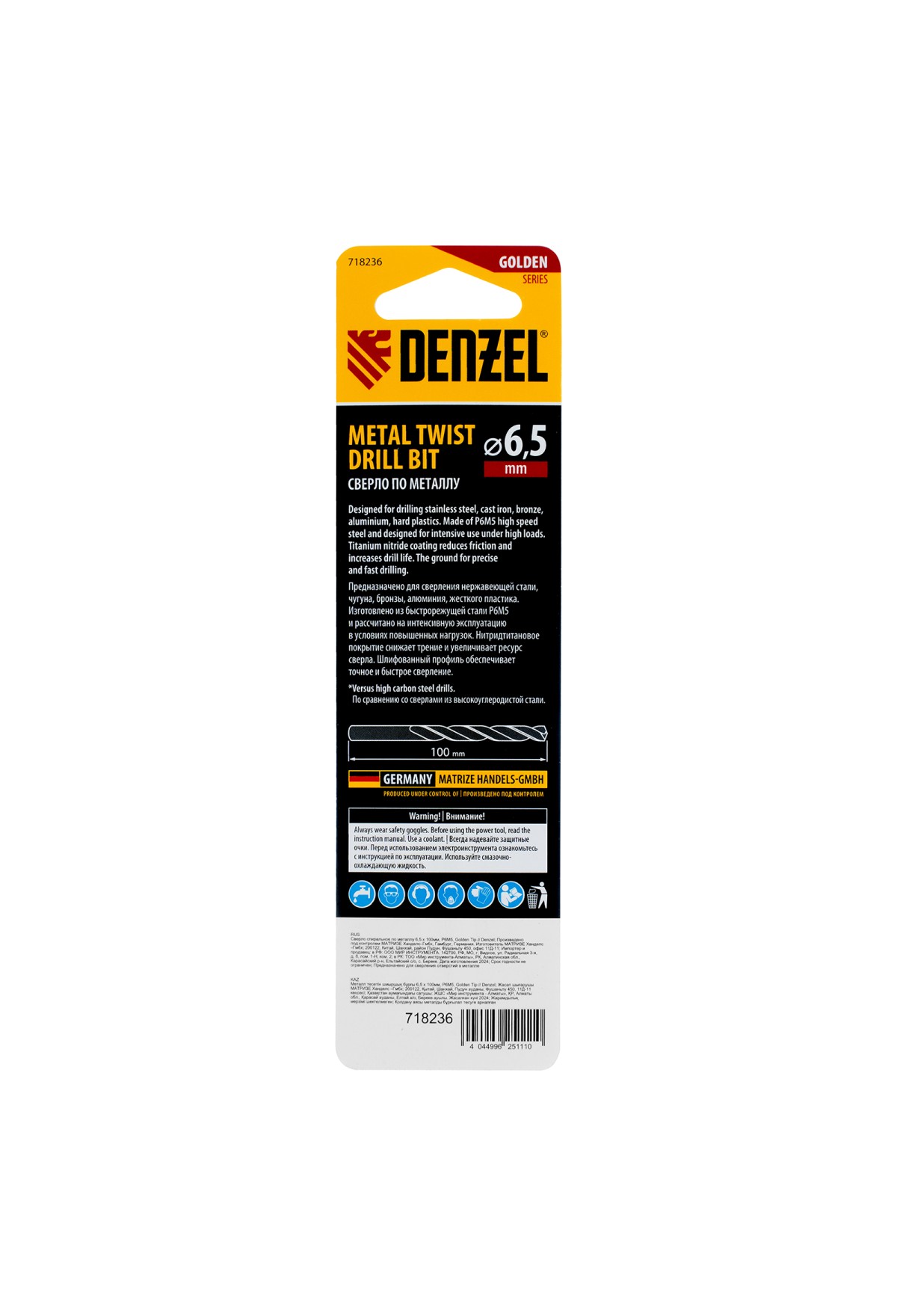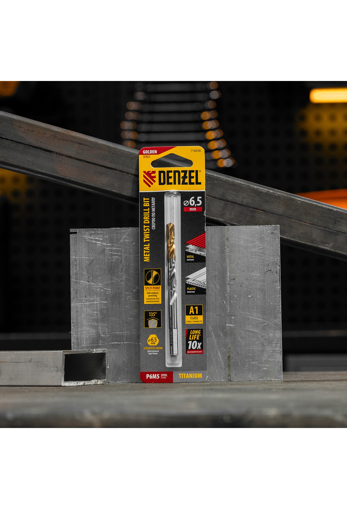 Спиральное сверло по металлу Denzel Golden Tip 718236 из стали P6M5, размером 6,5 х 100 мм, предназначено для получения отверстий в легированных и цветных металлах — меди, алюминии, мягкой бронзе, титане, латуни. Оснастка позволяет эффективно справляться с поставленными задачами благодаря оптимальному углу заточки 135°. Класс точности A гарантирует высокое качество полученных отверстий. Сверло используется для проведения монтажно-сборочных работ.