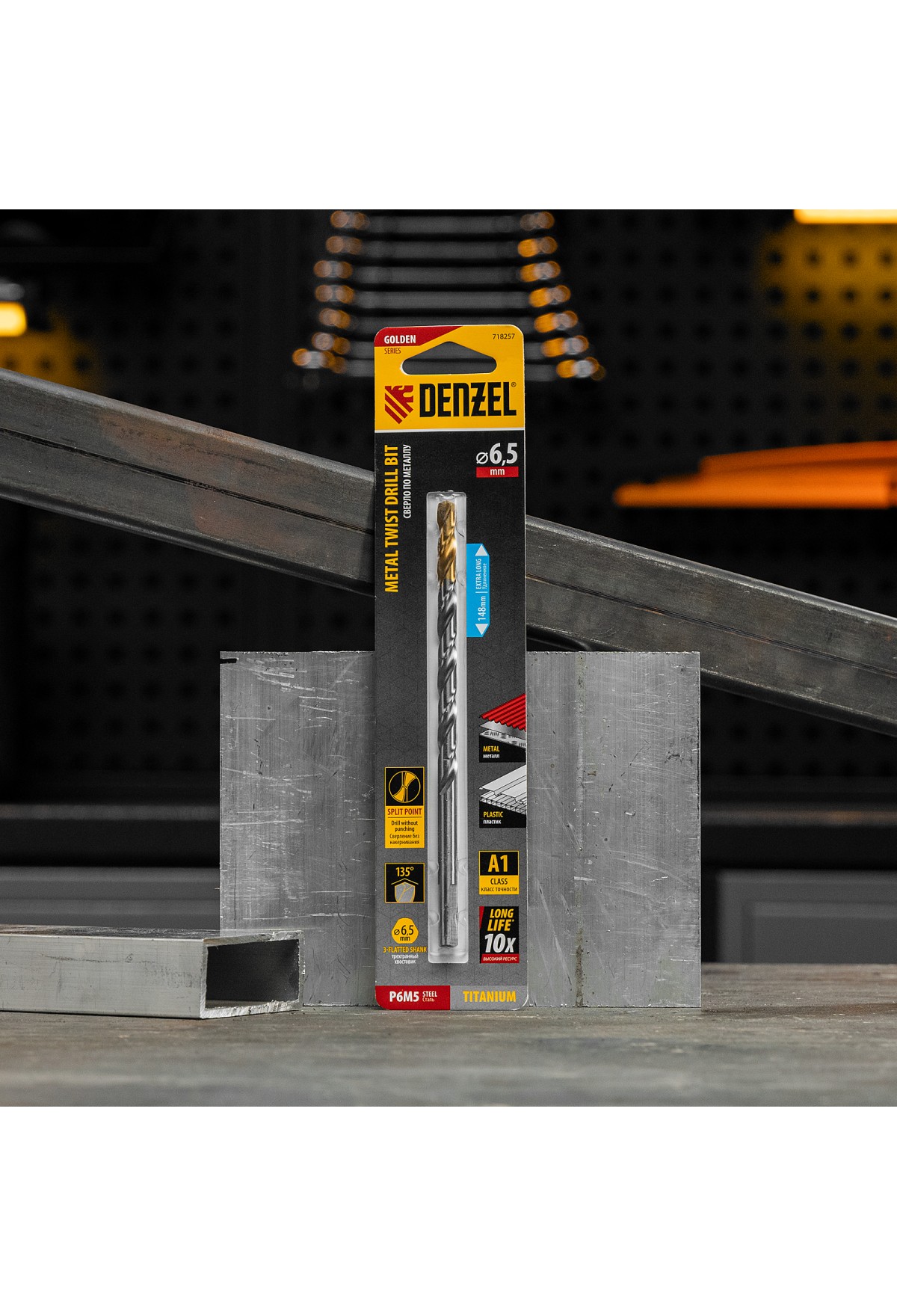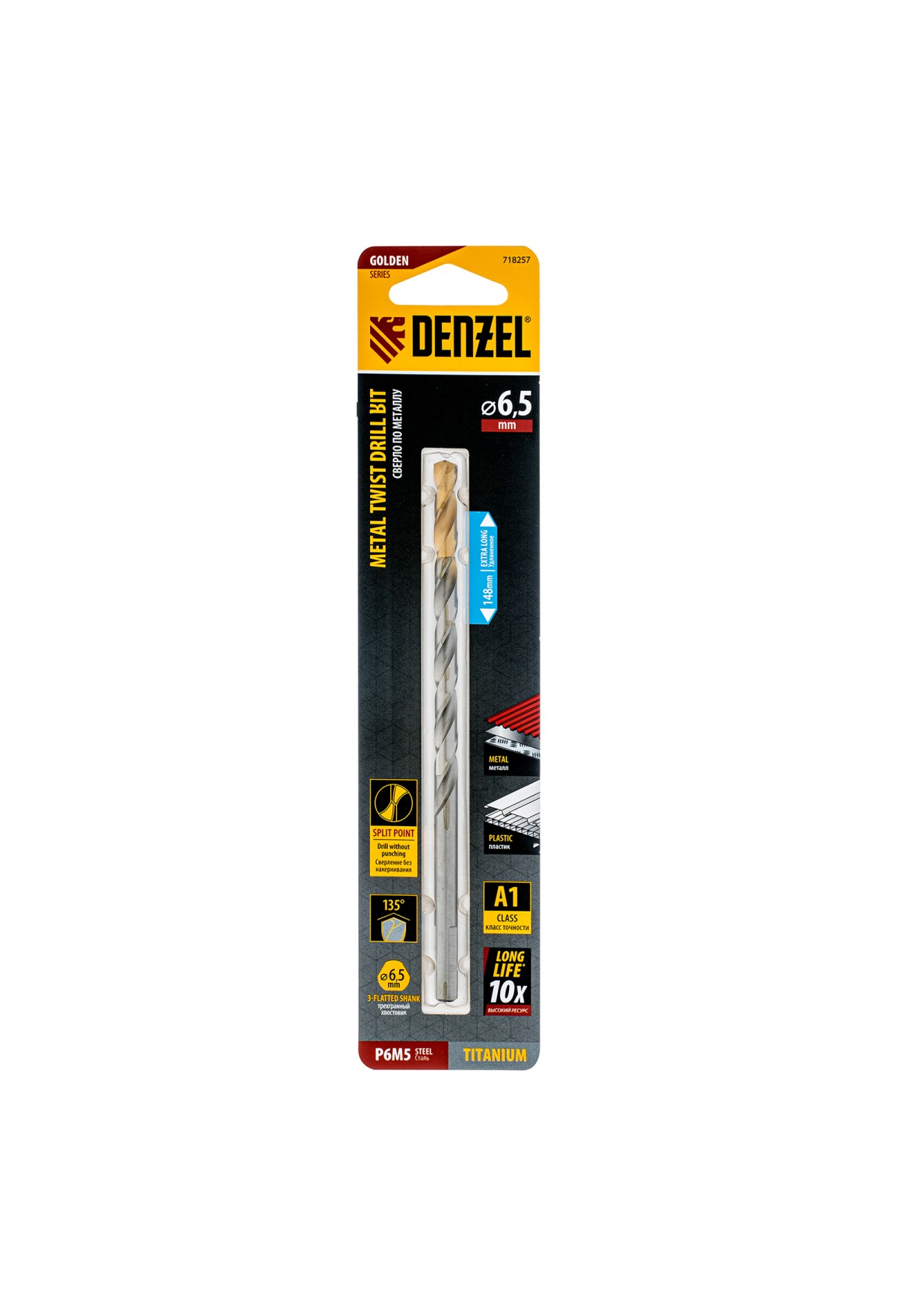 • Сверло спиральное по металлу 6,5 х 148 мм, Р6М5, Golden Tip, удлиненное Denzel