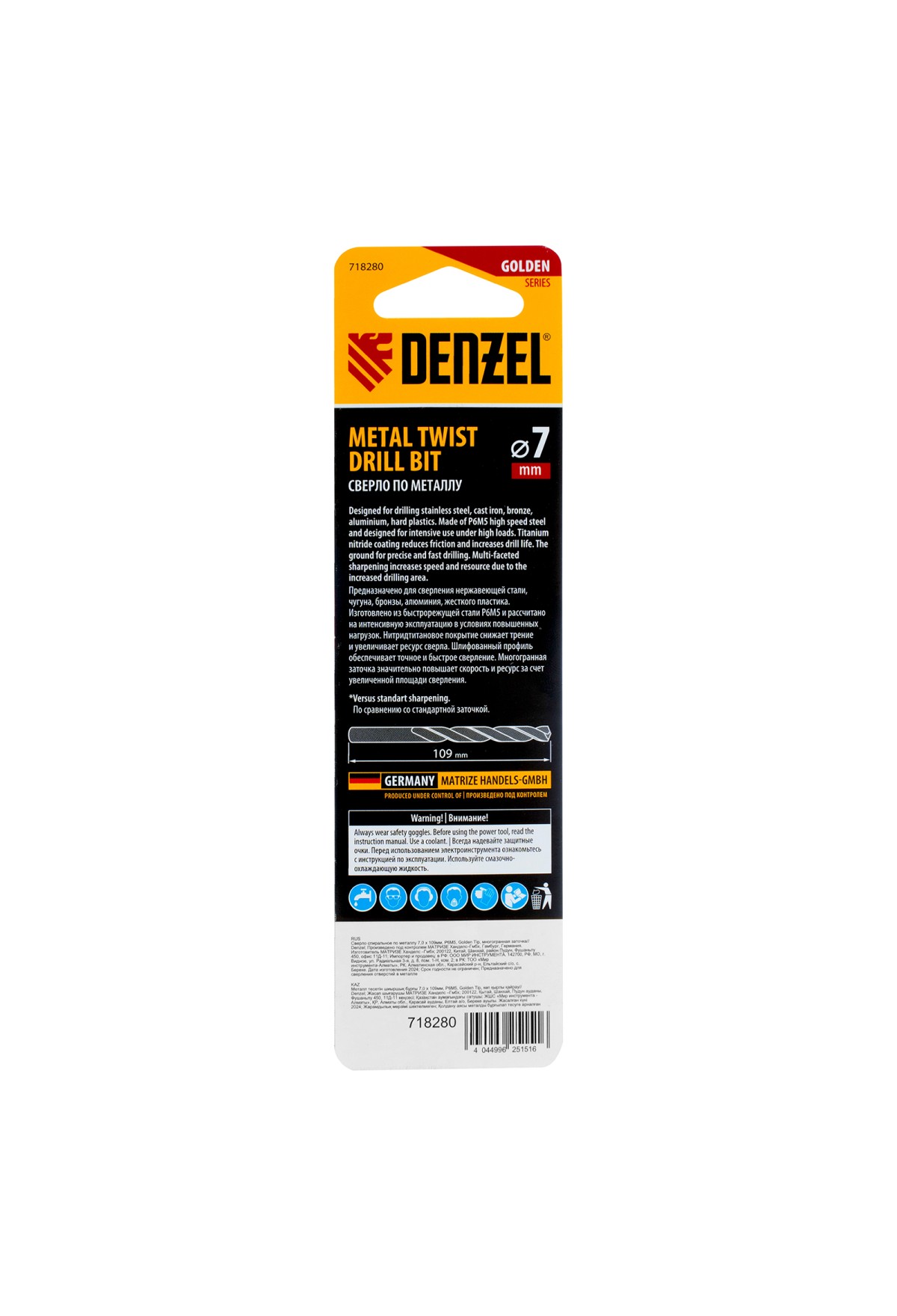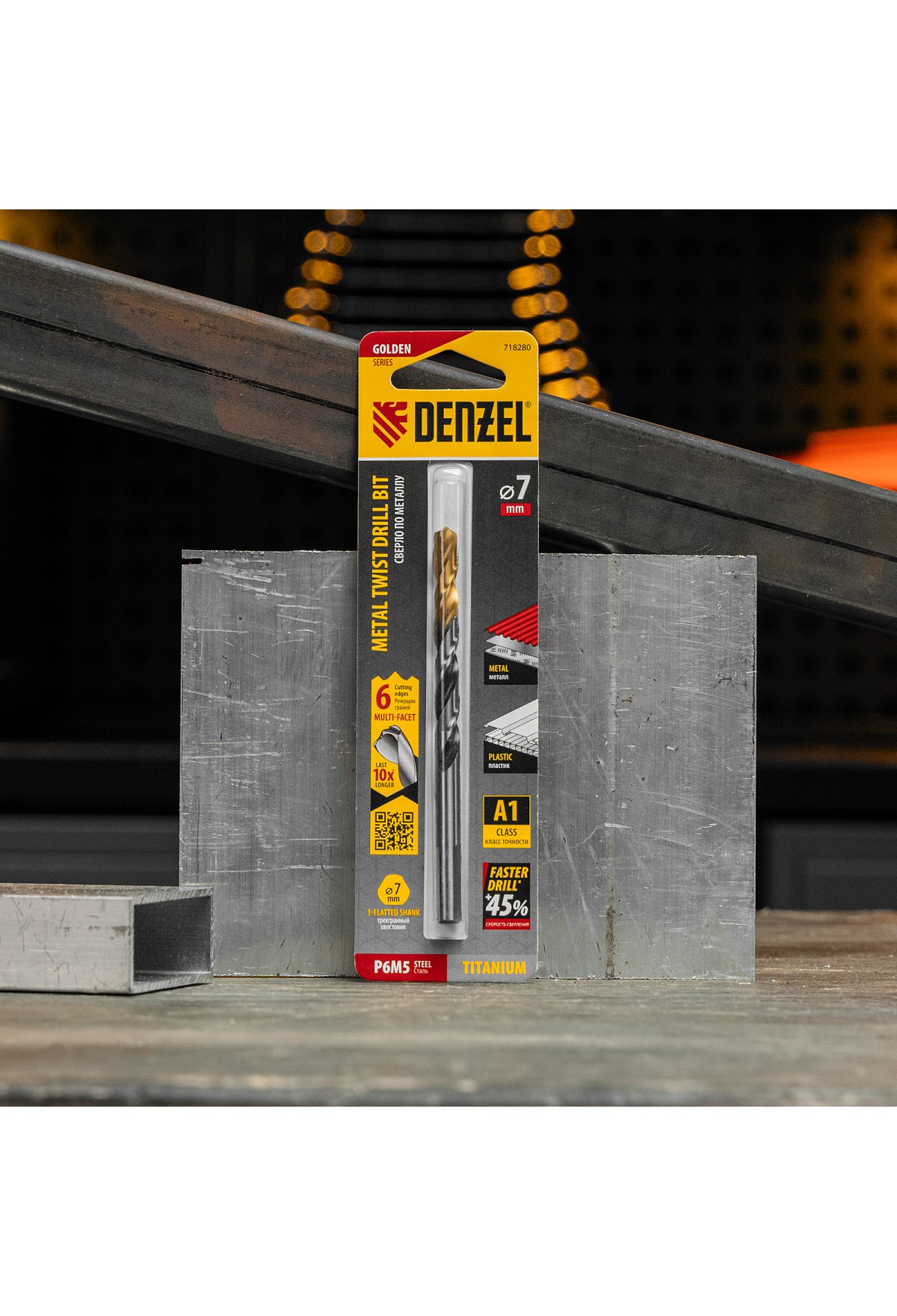 Спиральное сверло по металлу Denzel Golden Tip 718280 из стали P6M5, размером 7 х 109 мм, с многогранной заточкой, предназначено для получения отверстий в легированных сталях и цветных металлах. Многогранная заточка позволяет получать чистые и ровные отверстия практически без заусенцев. Сверлу присвоен класс точности A, что гарантирует высокое качество работ. Оснастка подходит для бытового и профессионального применения.
