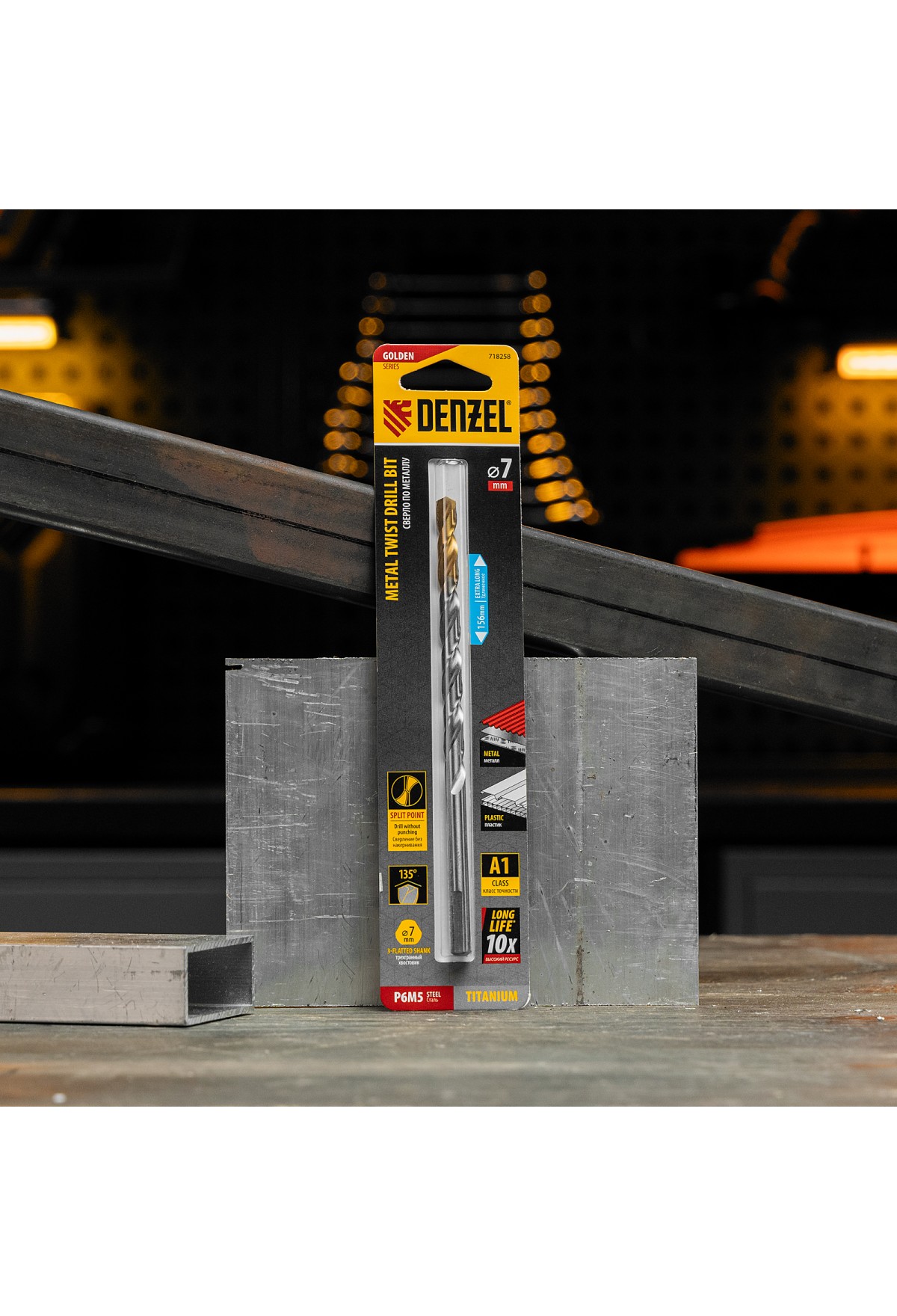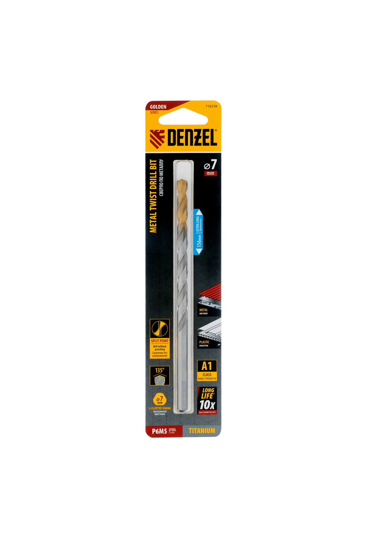 • Сверло спиральное по металлу 7,0 х 156 мм, Р6М5, Golden Tip, удлиненное Denzel