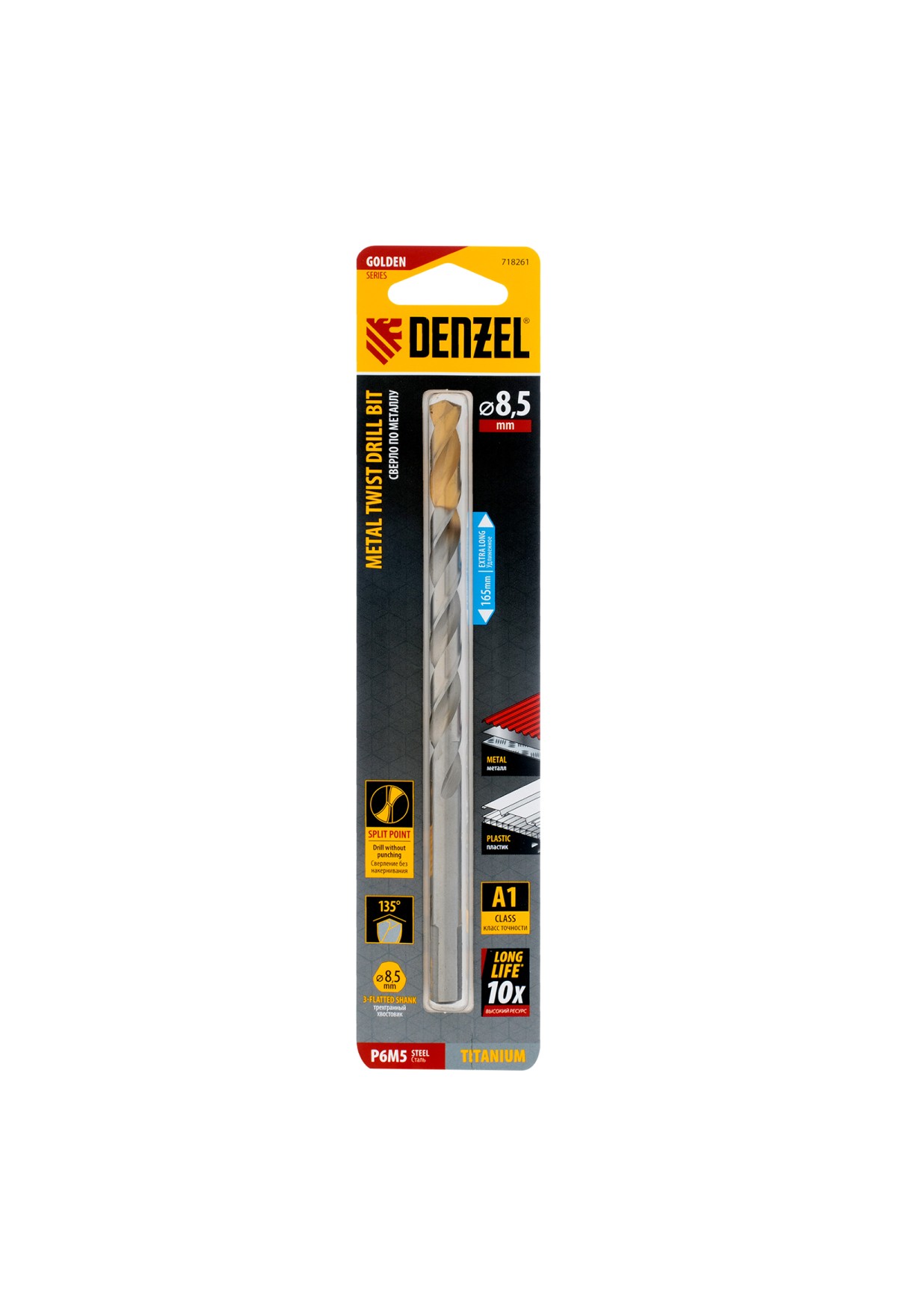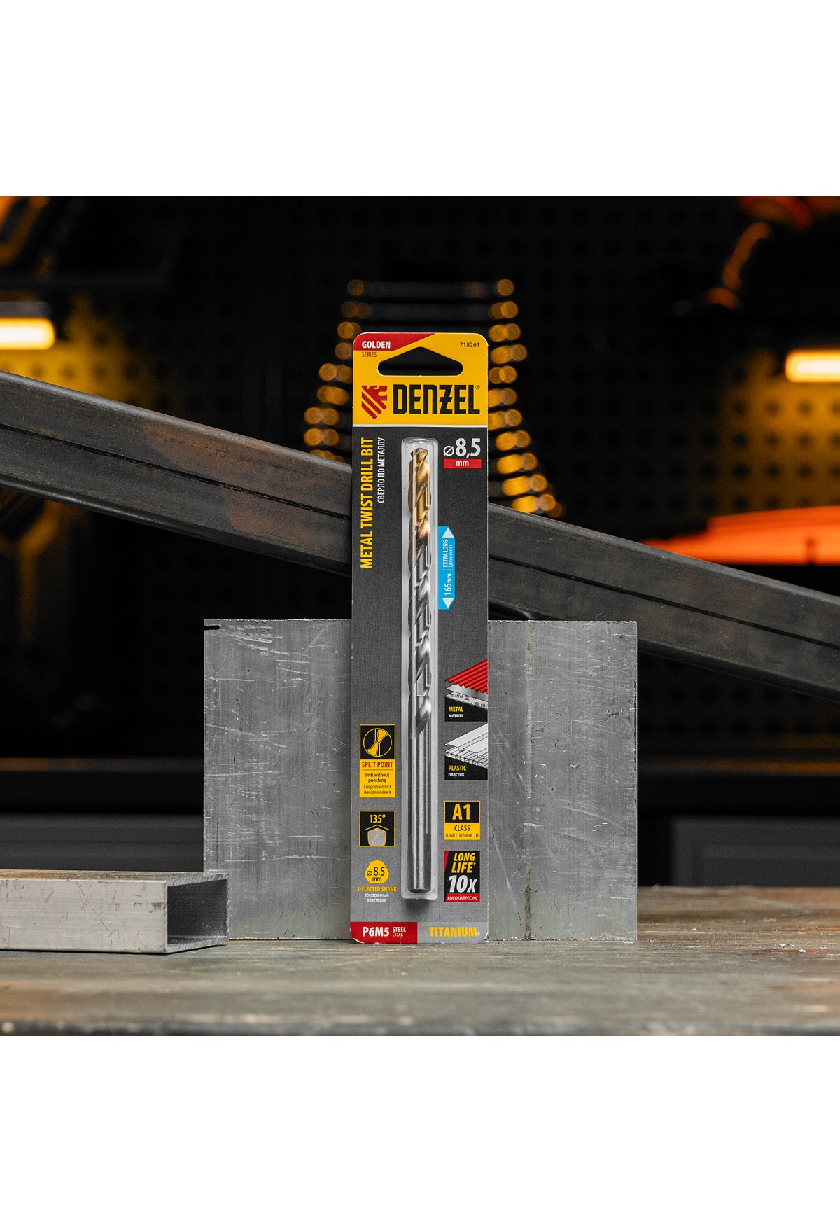 Удлиненное спиральное сверло по металлу Denzel Golden Tip 718261 из стали P6M5, размером 8,5 х 165 мм, предназначено для получения отверстий в легированных и цветных металлах — меди, алюминии, мягкой бронзе, титане, латуни. Оснастка позволяет эффективно справляться с этими задачами благодаря оптимальному углу заточки 135°. Класс точности A гарантирует высокое качество работ, а удлиненный профиль позволяет сверлить глубокие отверстия. Сверло используется для проведения монтажно-сборочных работ.