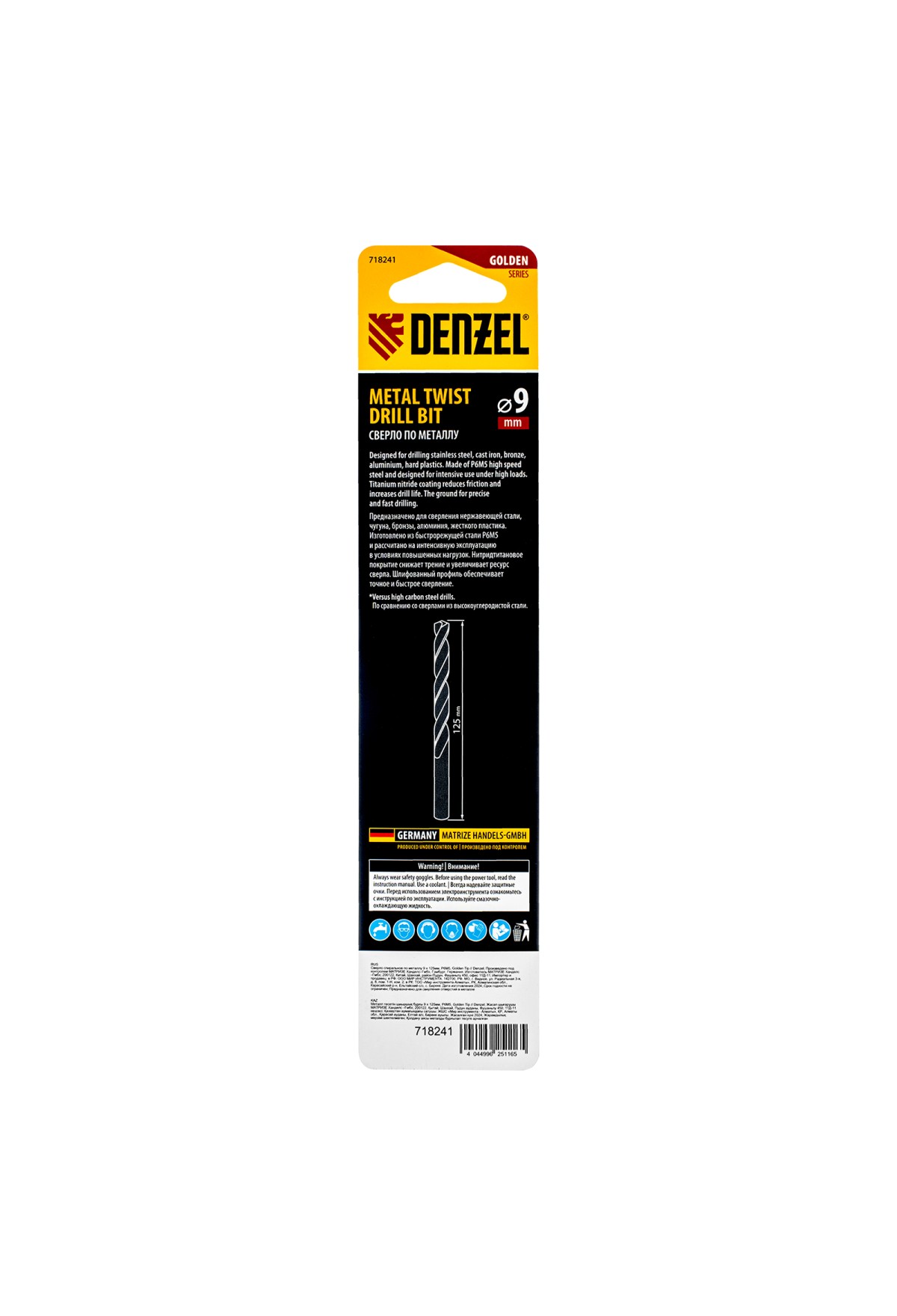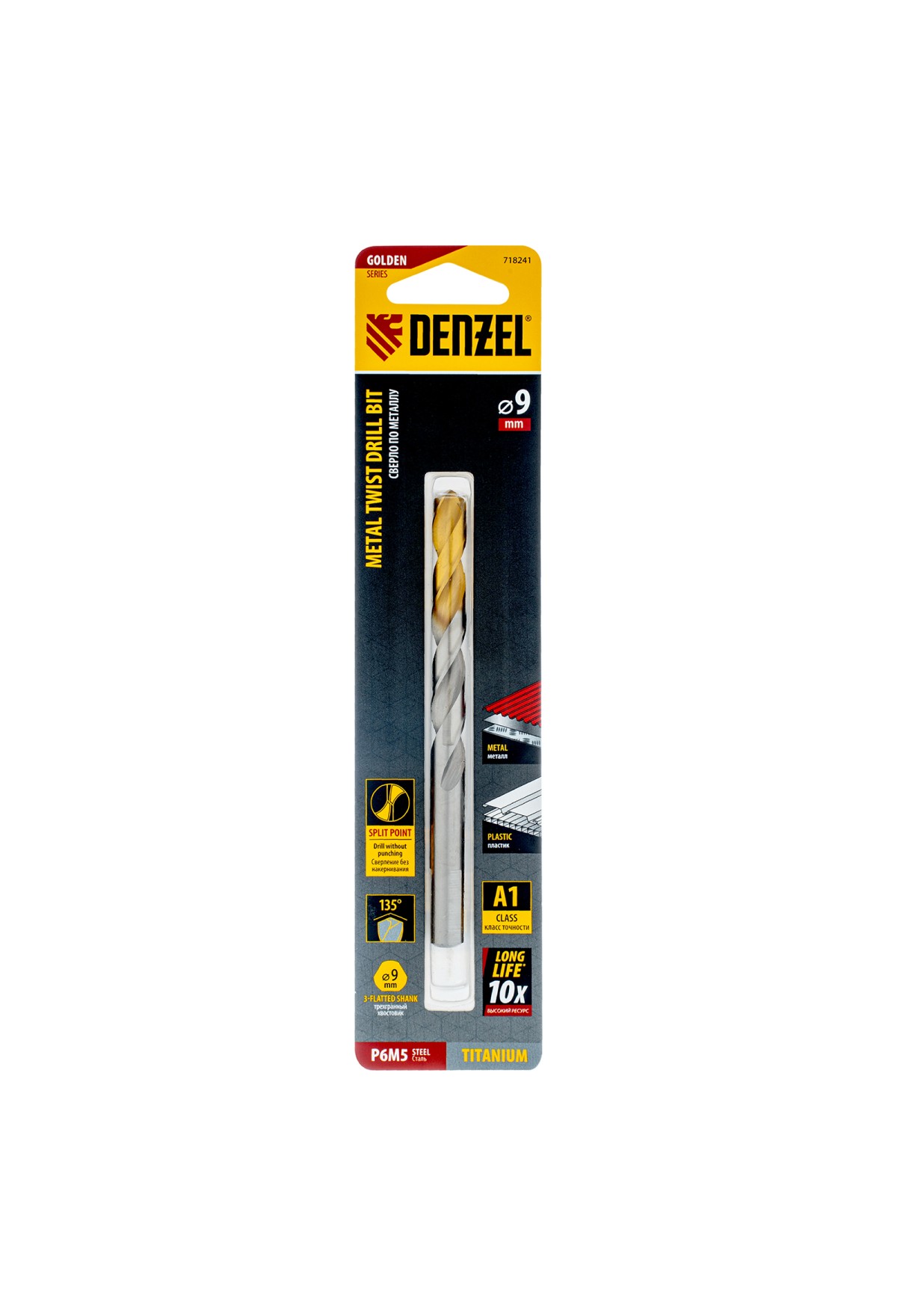 Спиральное сверло по металлу Denzel Golden Tip 718241 из стали P6M5, размером 9 х 125 мм, предназначено для получения отверстий в легированных и цветных металлах — меди, алюминии, мягкой бронзе, титане, латуни. Оснастка позволяет эффективно справляться с поставленными задачами благодаря оптимальному углу заточки 135°. Класс точности A гарантирует высокое качество полученных отверстий. Сверло используется для проведения монтажно-сборочных работ.