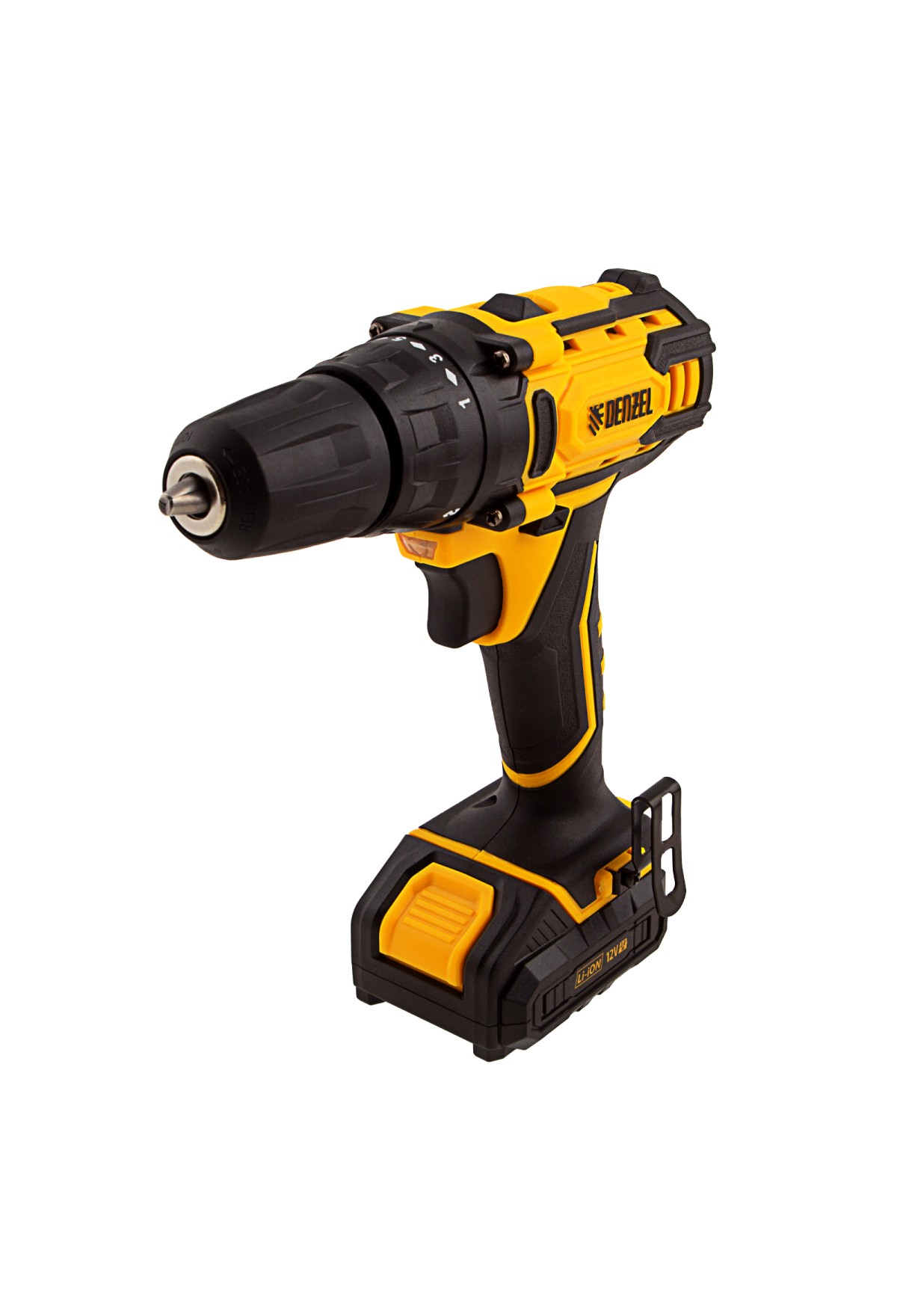 Аккумуляторная дрель-шуруповерт Denzel CDL-12-01CB 26104 с батареей Li-Ion 12 В предназначена для монтажа и демонтажа резьбовых соединений, сверления отверстий в металле (до 10 мм), древесине (до 16 мм), пластмассе и других материалах. Инструмент пригодится профессионалам и любителям на строительной площадке, дома или на даче.,Надежный литий-ионный аккумулятор без эффекта памяти обеспечивает долгий срок службы инструмента. Дрель не зависит от сети питания, что делает удобной работу на строительных объектах, на высоте и в отдаленных участках дома.
