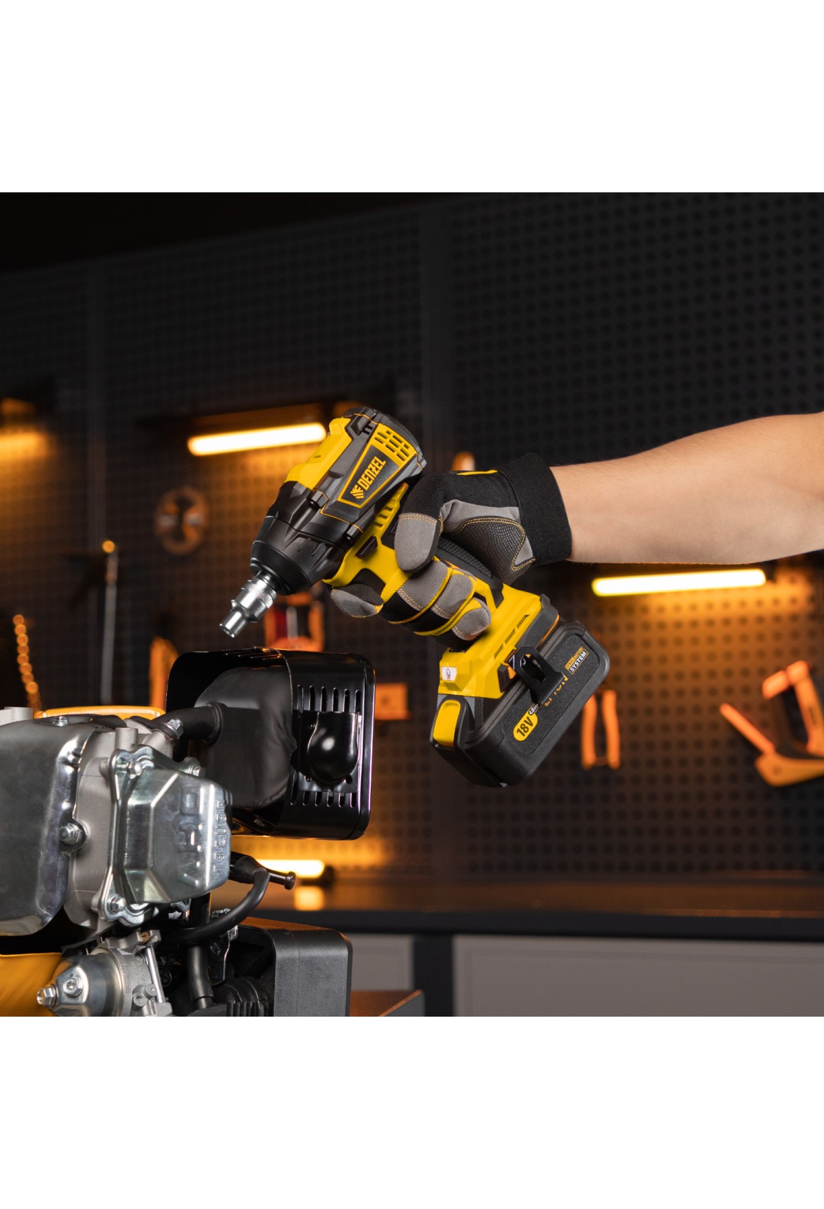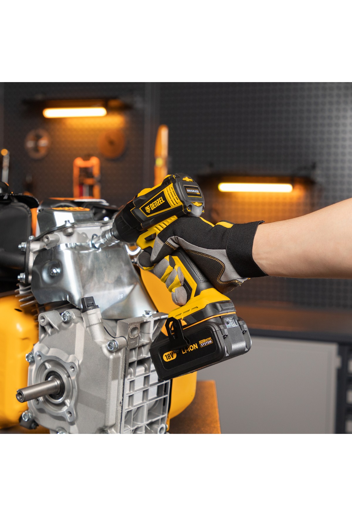 • Универсальность — к инструменту подойдут любые 18 В аккумуляторы Denzel battery system.