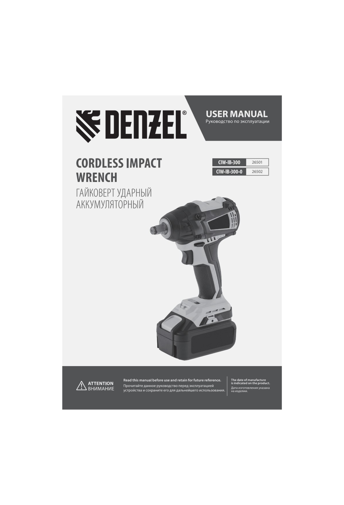 Технические характеристики Гайковерт ударный аккумуляторный бесщет CIW-IB-300-0, Li-ion, 18В, 300Нм Denzel