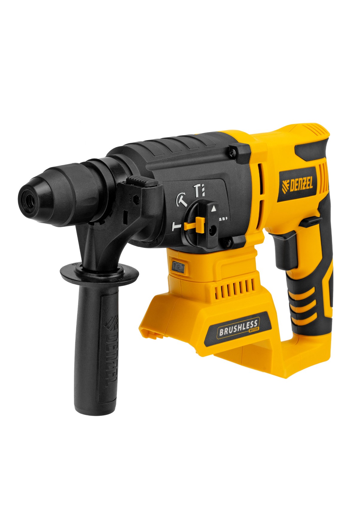 - Универсальность — к перфоратору подходит любой Li-Ion аккумулятор единой платформы Denzel Battery System 18V.