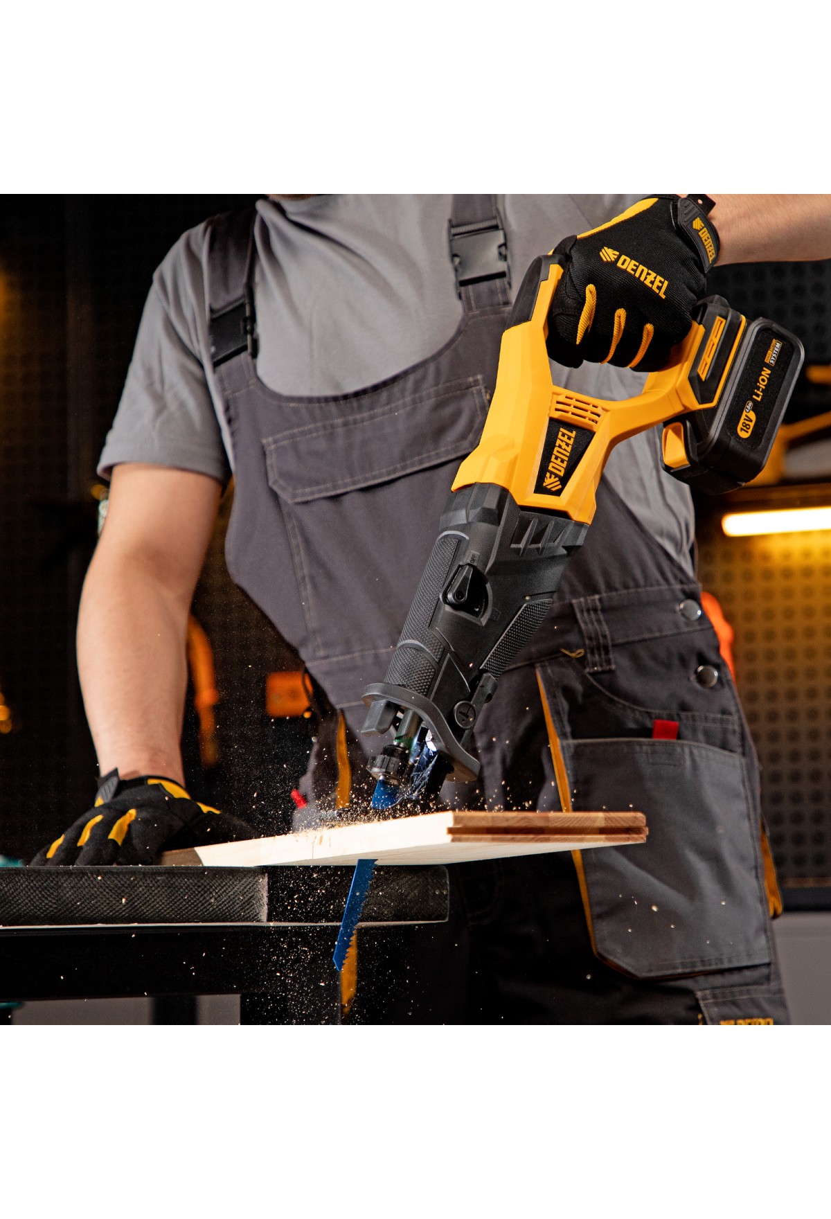 • Пила сабельная аккумуляторная бесщет BRC-120-0, 18В Li-Ion Denzel