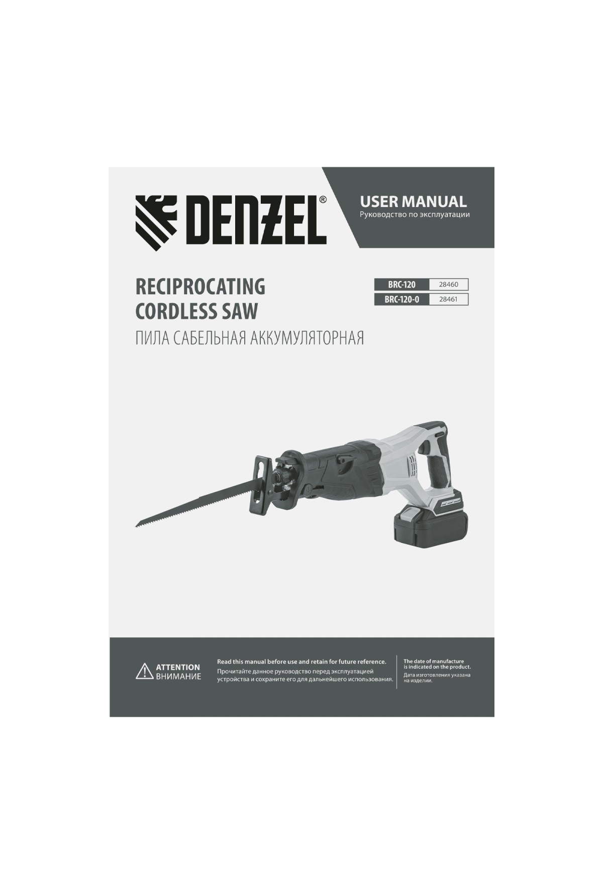 Технические характеристики Пила сабельная аккумуляторная бесщет BRC-120-0, 18В Li-Ion Denzel
