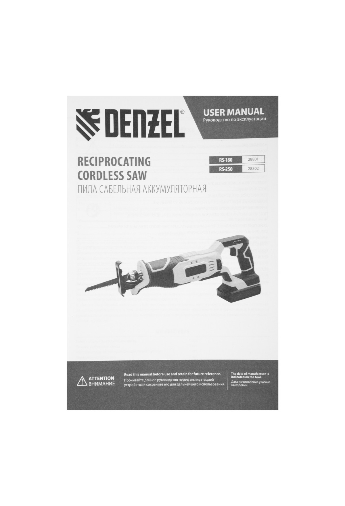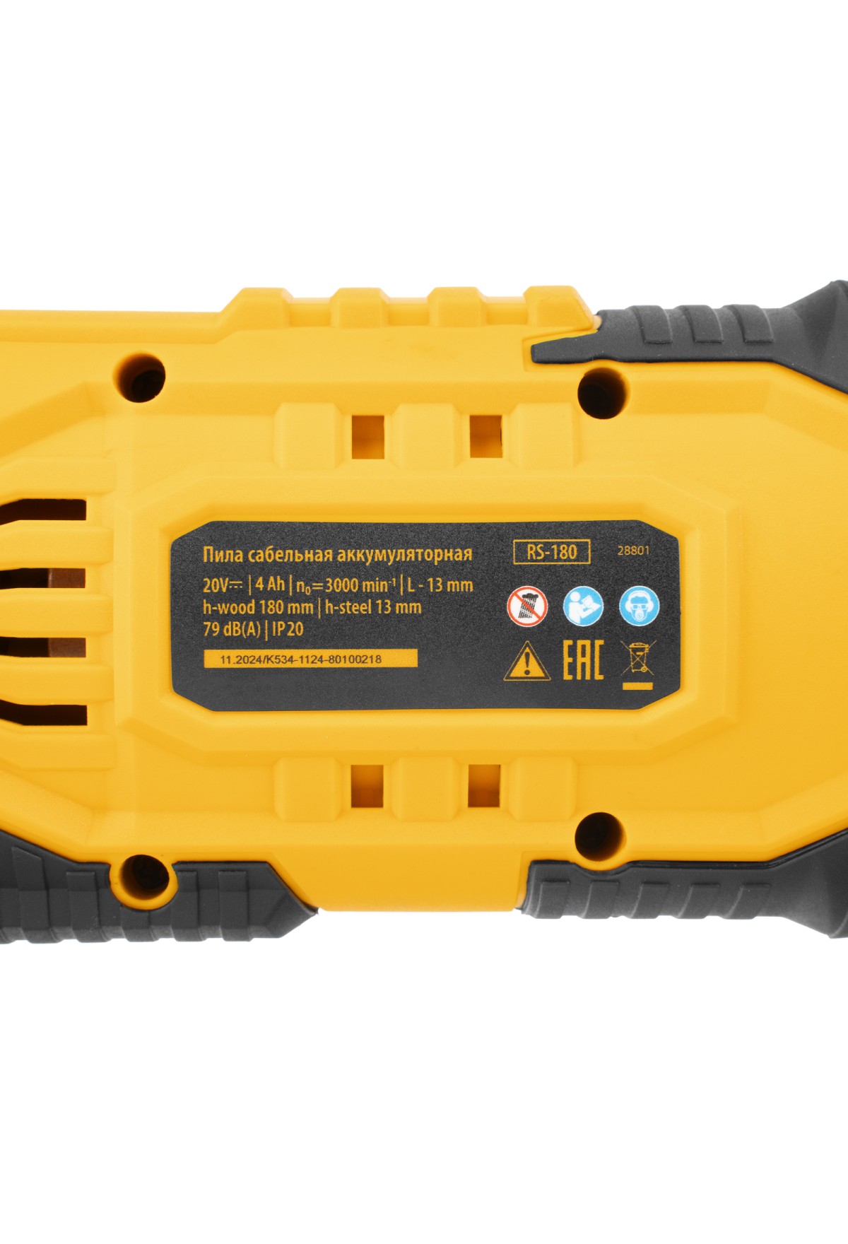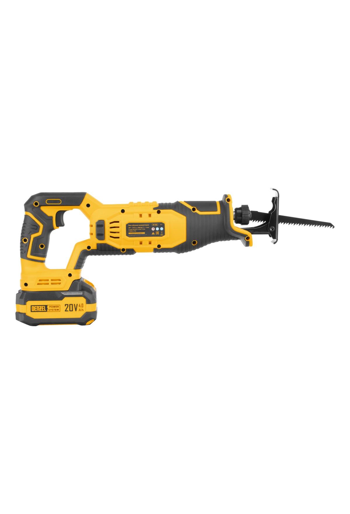Пила сабельная аккумуляторная RS-180, Li-Ion, 20 В Denzel