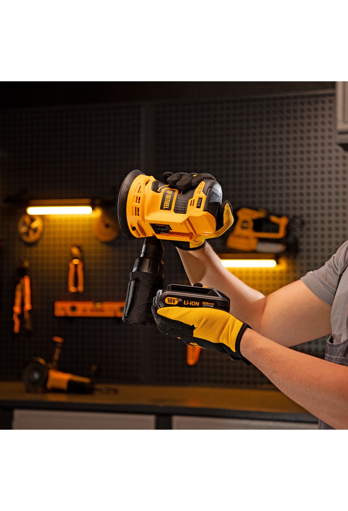 Аккумуляторная эксцентриковая шлифовальная машина Denzel COS-125 28471 работает от источника питания Li-Ion емкостью 2 А/ч, с рабочим напряжением 18 В. Предназначена для выполнения зачистных, шлифовальных и полировальных работ по древесине, металлу, пластику и камню. Применяется со шлифовальными и полировальными кругами диаметром 125 мм, скорость вращения составляет 2000-10000 об/мин., благодаря чему можно эффективно решать различные задачи.