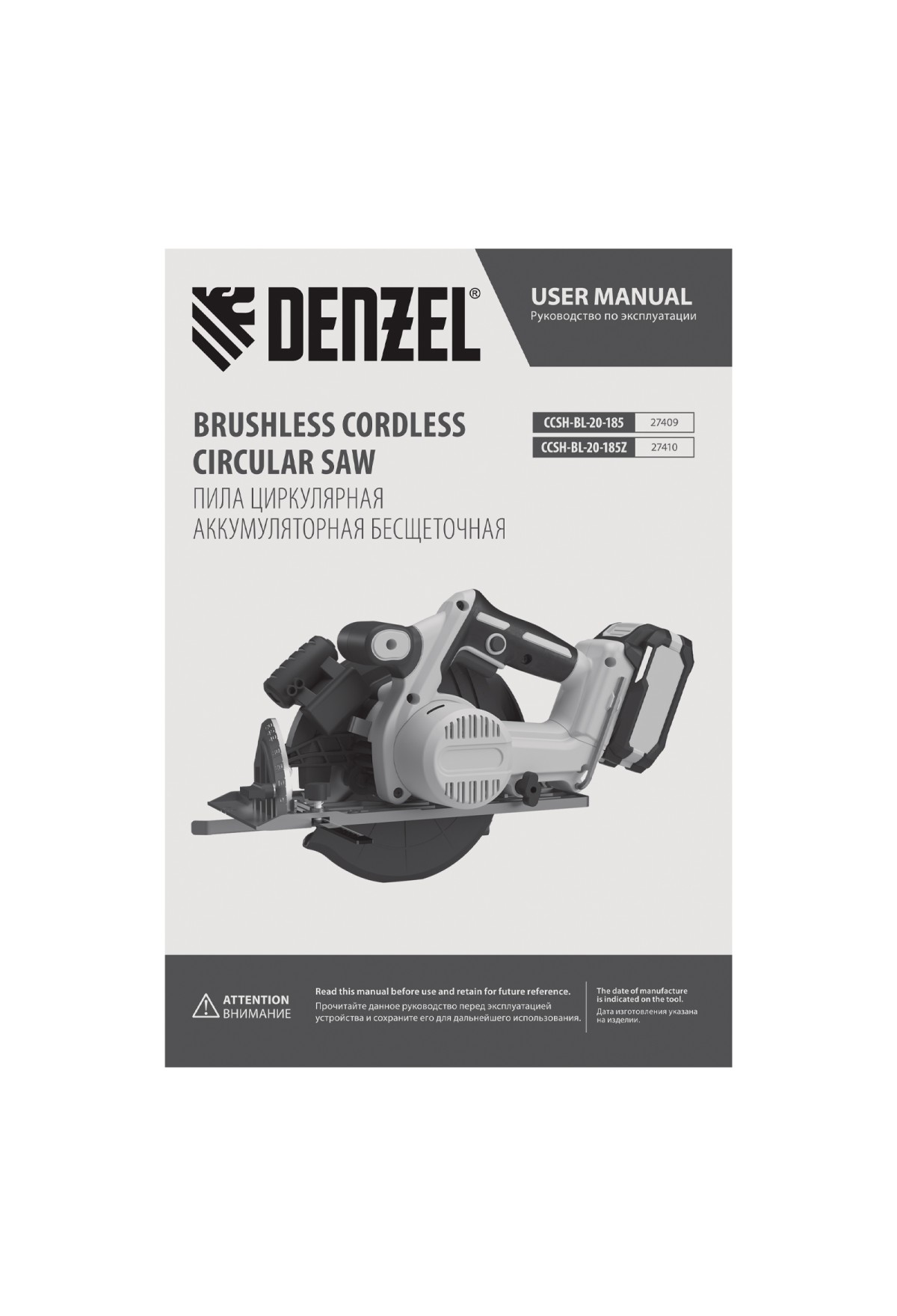 Пила циркулярная аккумуляторная бесщет. CCSH-BL-20-185, 185 мм, Li-Ion, 20 В// Denzel