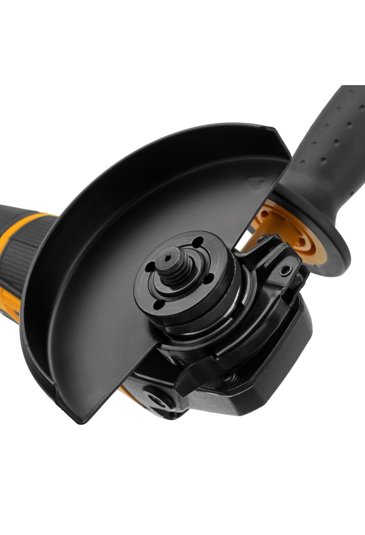 - Быстрая замена оснастки — конструкцией предусмотрена блокировка шпинделя и бесключевое крепление защитного кожуха.