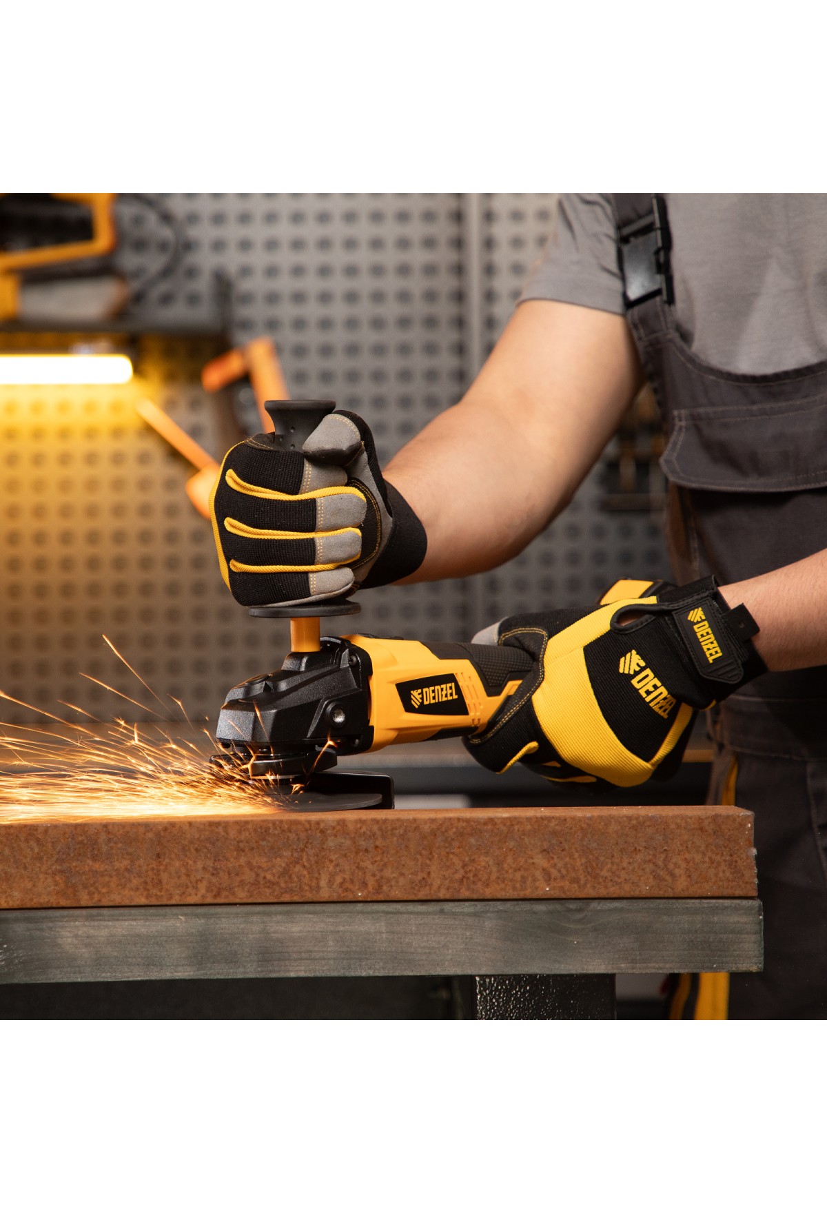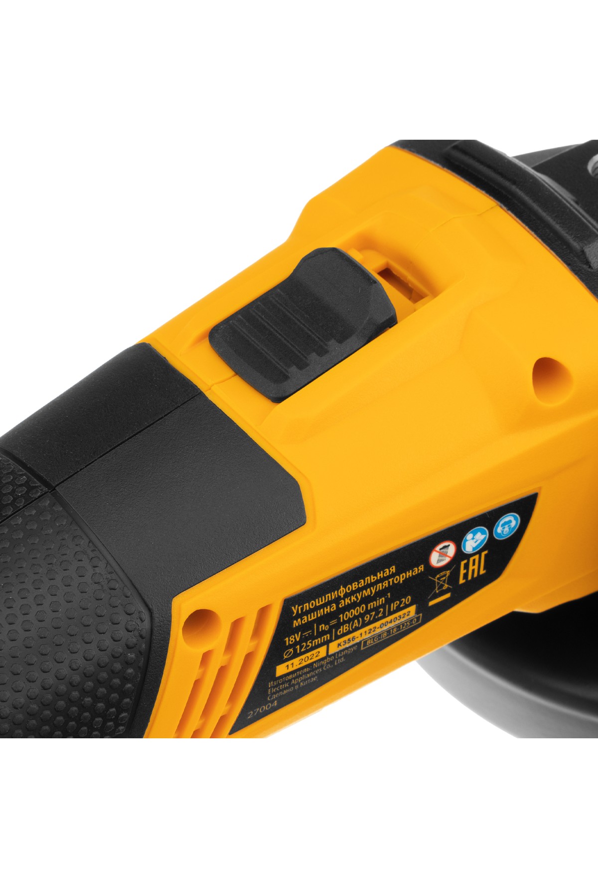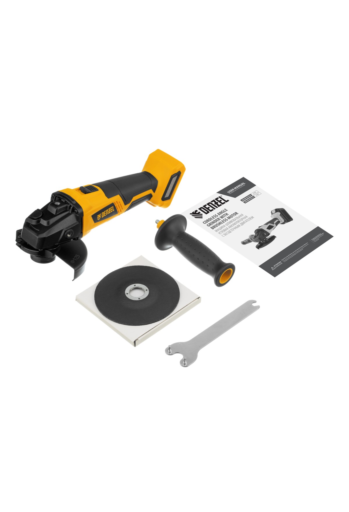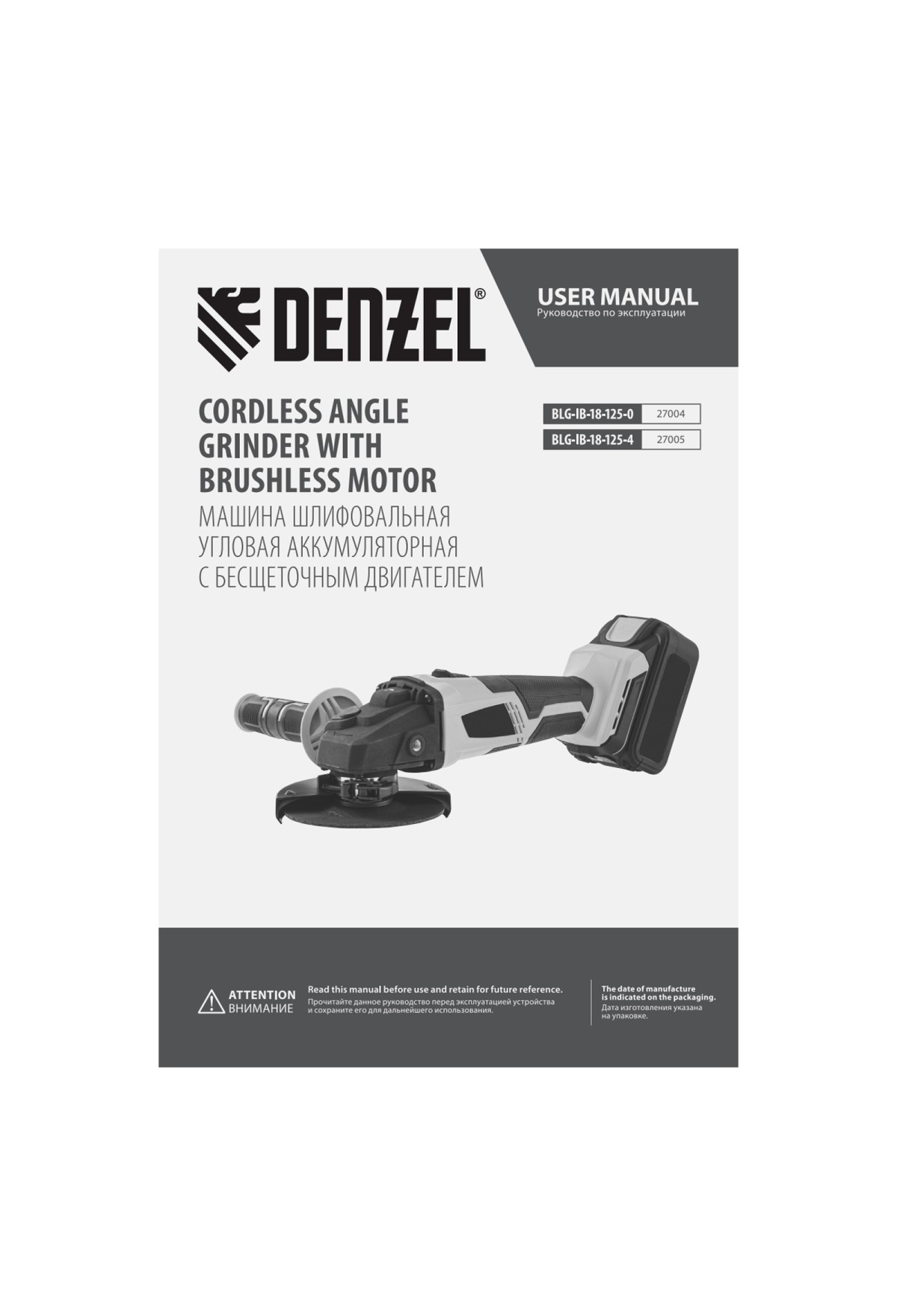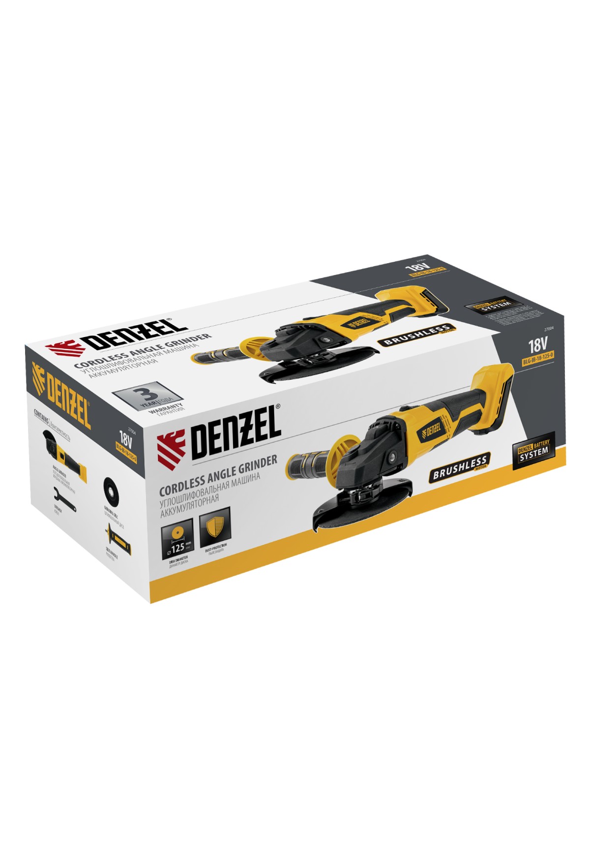 - Универсальность — к УШМ подходит аккумулятор 4Ач Li-ion, совместимый с любым инструментом 18V Denzel battery system серии IB (в комплект поставки не входит).