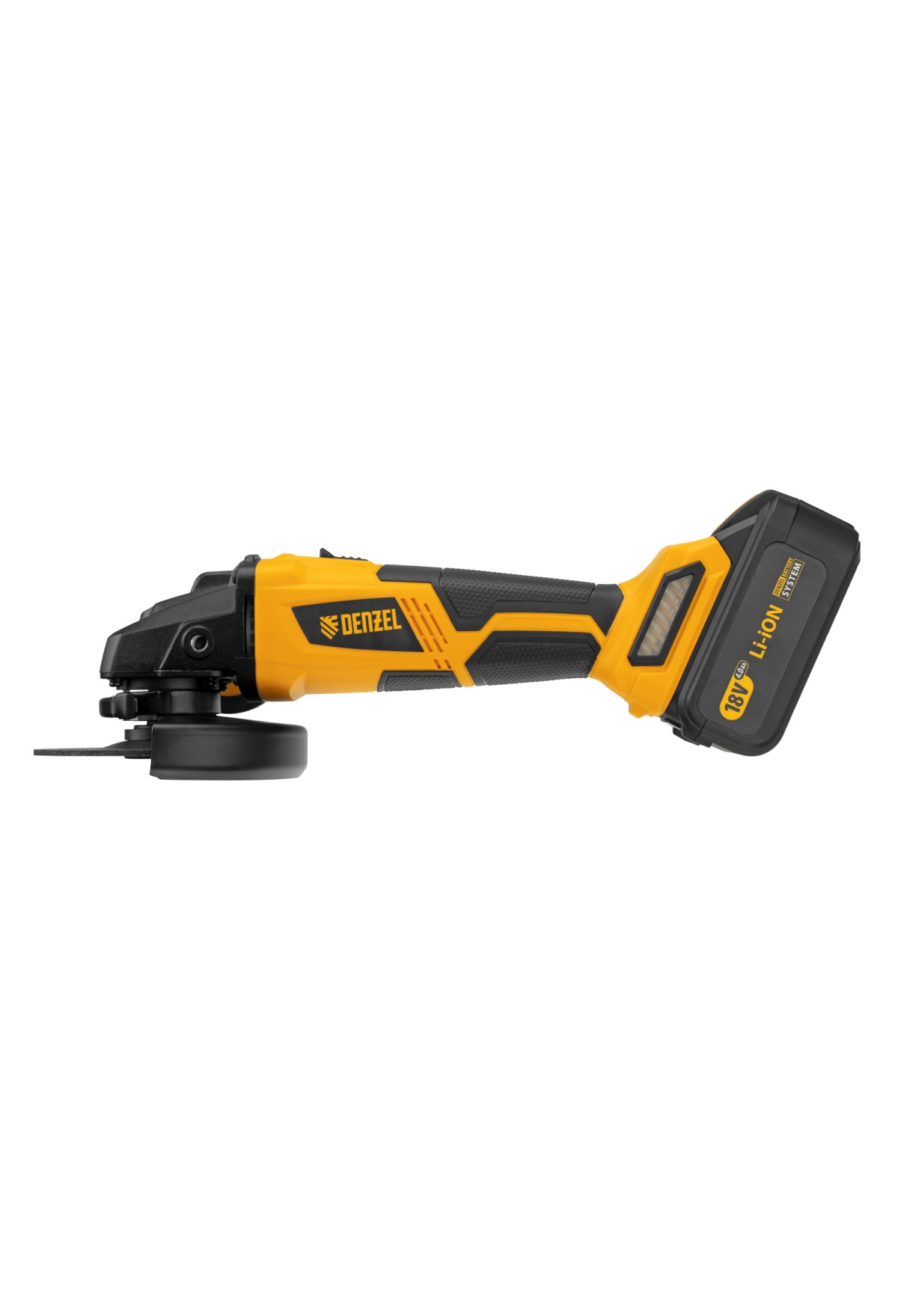 - Универсальность — аккумулятор совместим со всеми инструментами модельного ряда единой платформы Denzel Battery System 18V.