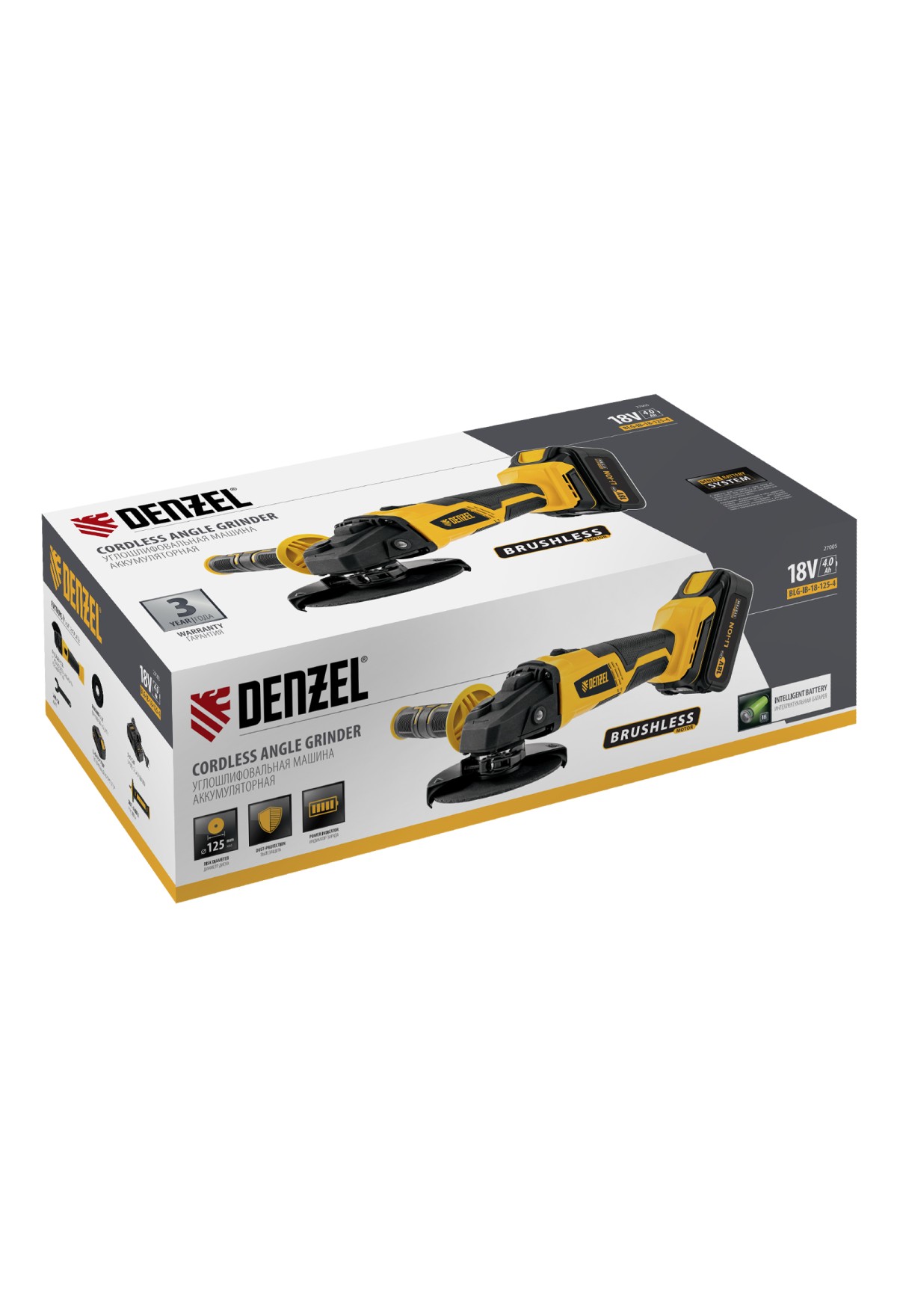 Аккумуляторная углошлифовальная машина Denzel BLG-IB-18-125-4 27005 с бесщеточным двигателем работает от аккумулятора Li-Ion с рабочим напряжением 18 В. Используется с оснасткой диаметром 125 мм для зачистки, шлифования и резки металла, камня, бетона. Мощный двигатель обеспечивает скорость вращения шпинделя 10000 об/мин, что позволяет эффективно решать поставленные задачи. Машина не нуждается в стационарном источнике электропитания, что расширяет возможности ее использования.