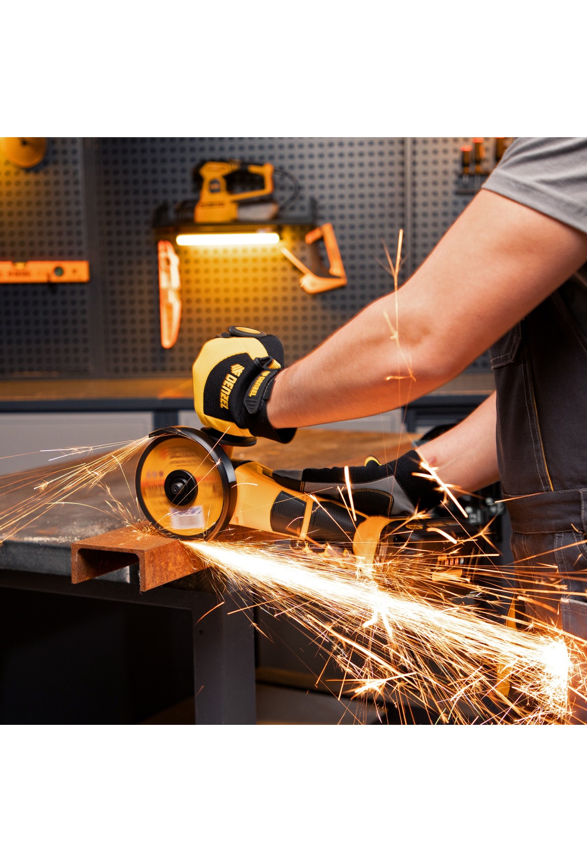 - Быстрая замена оснастки — конструкцией предусмотрена блокировка шпинделя и бесключевое крепление защитного кожуха.