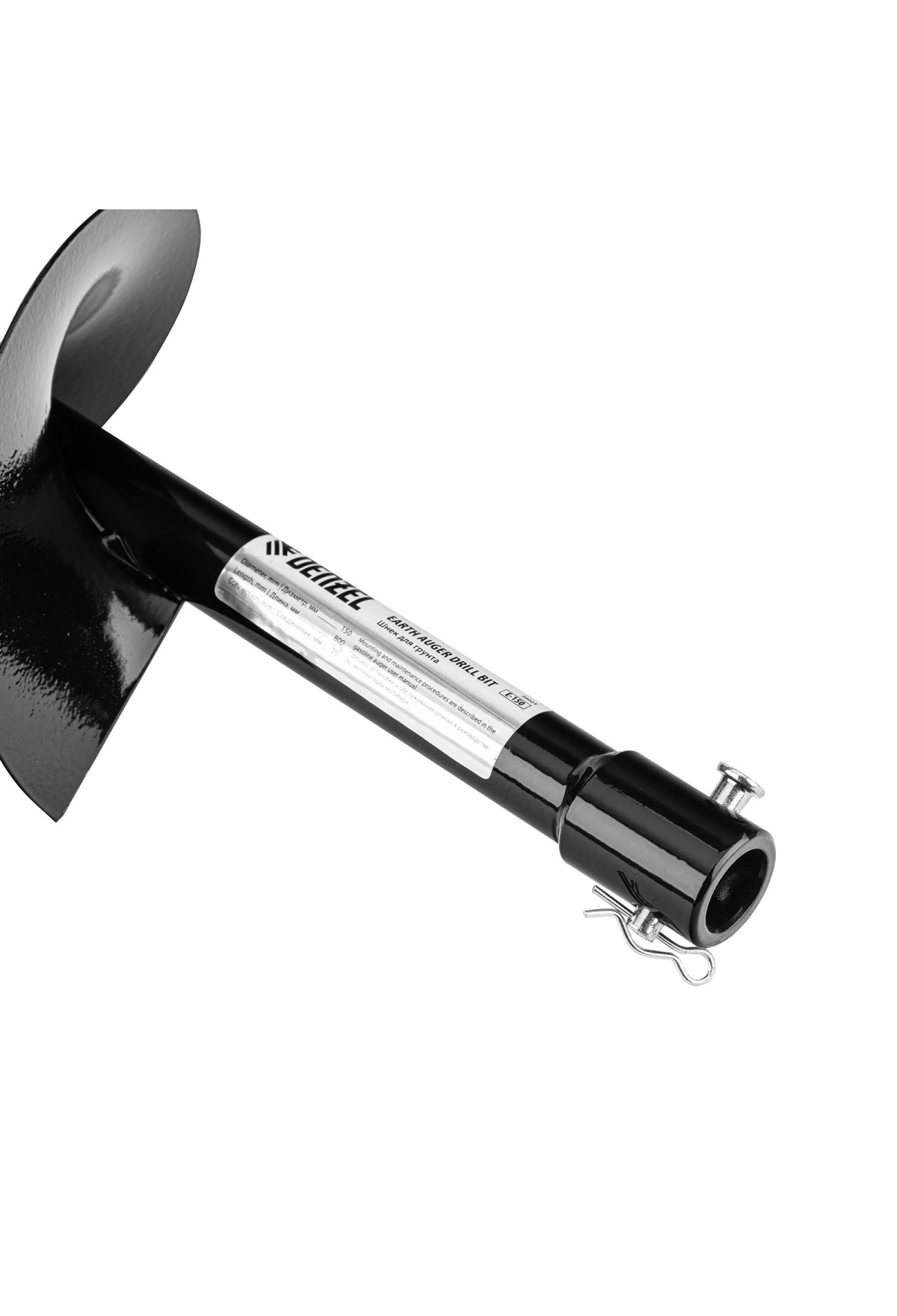 Технические характеристики Шнек для грунта E-150, диаметр 150 мм, длина 800 мм,соединение 20 мм, несъемный нож Denzel