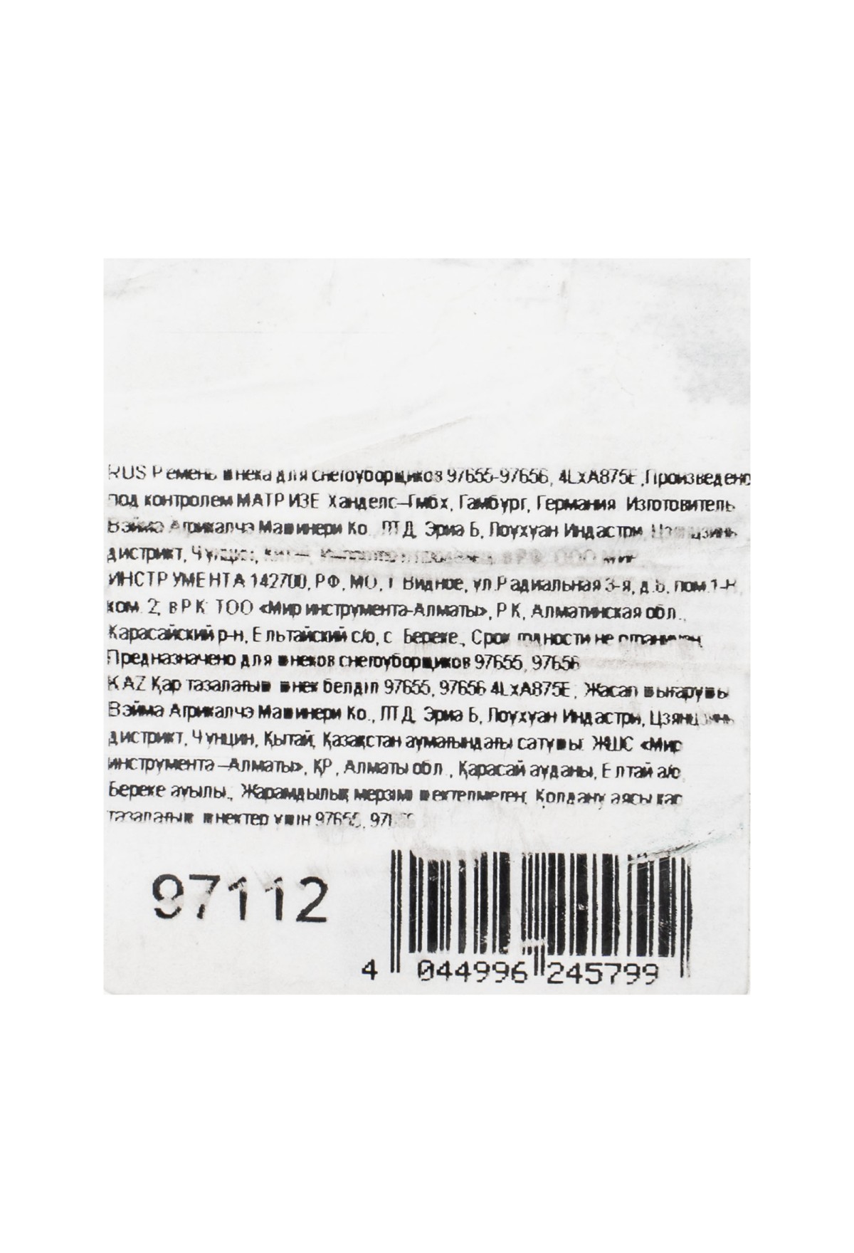 Тэги: Ремень шнека для снегоуборщиков 97655-97656, 4LхA875E, VR6-97112, No name, VR6, VR6-Аксессуары для снегоуборочных машин, VR6-Силовое оборудование