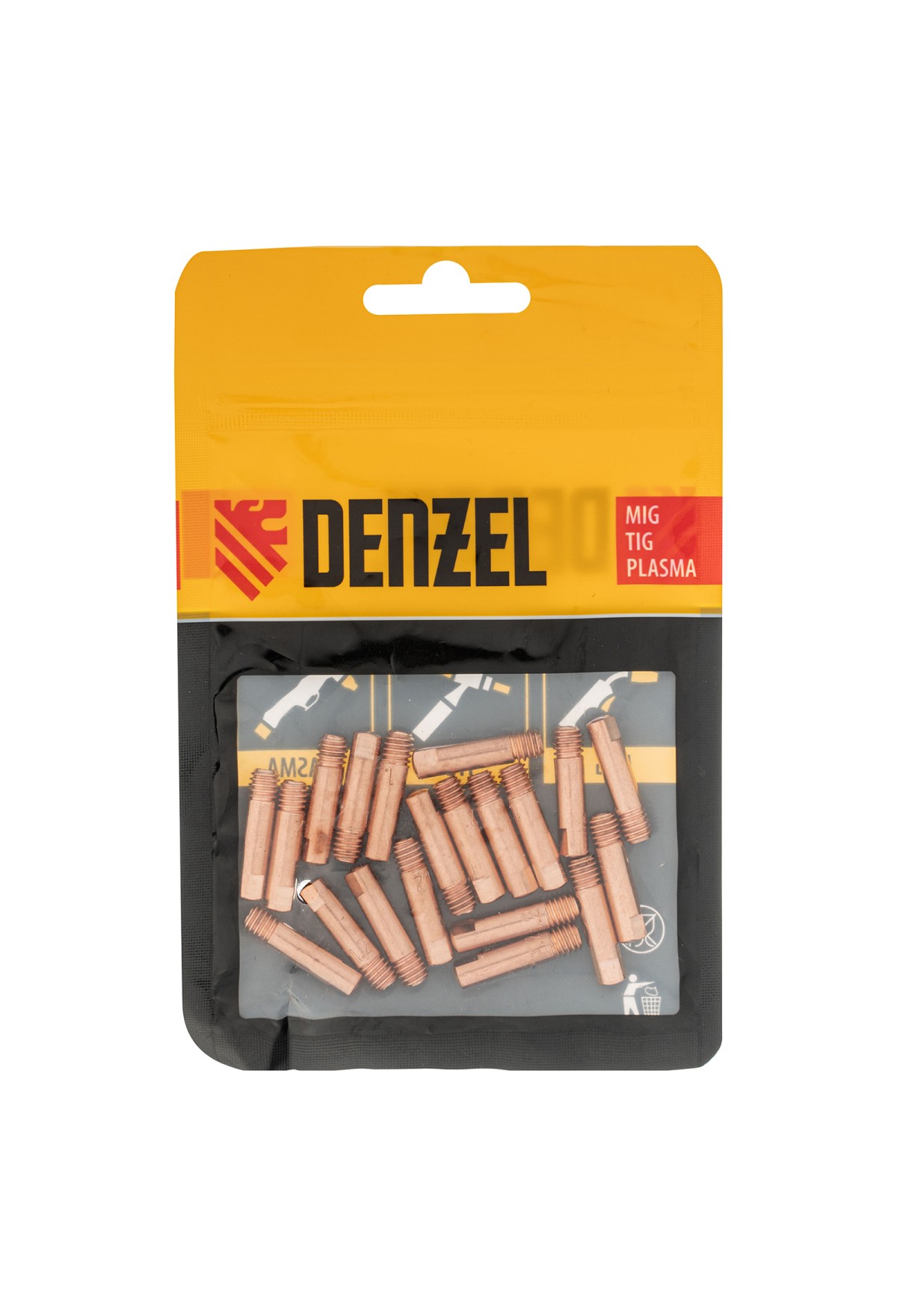Токосъемный наконечник Denzel 93649 из меди E-CU, с резьбовым соединением M6х24, 20 шт. в упаковке, совместим со сварочными горелками типа 15 (в том числе с моделью Denzel 93641) и предназначен для подвода тока к проволоке диаметром 1,2 мм на выходе в область сварки. Используется для замены изношенной детали и позволяет быстро восстановить работоспособность горелки.