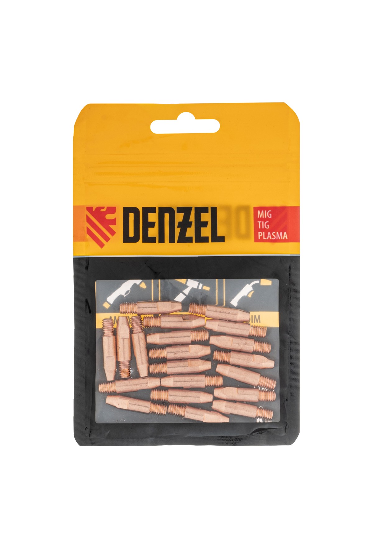 Токосъемный наконечник Denzel 93648 из меди E-CU, с резьбовым соединением M6х28, 20 шт. в упаковке, совместим со сварочными горелками типа 24 (в том числе с моделью Denzel 93642) и предназначен для подвода тока к проволоке диаметром 1,2 мм на выходе в область сварки. Используется для замены изношенной детали и позволяет быстро восстановить работоспособность горелки.