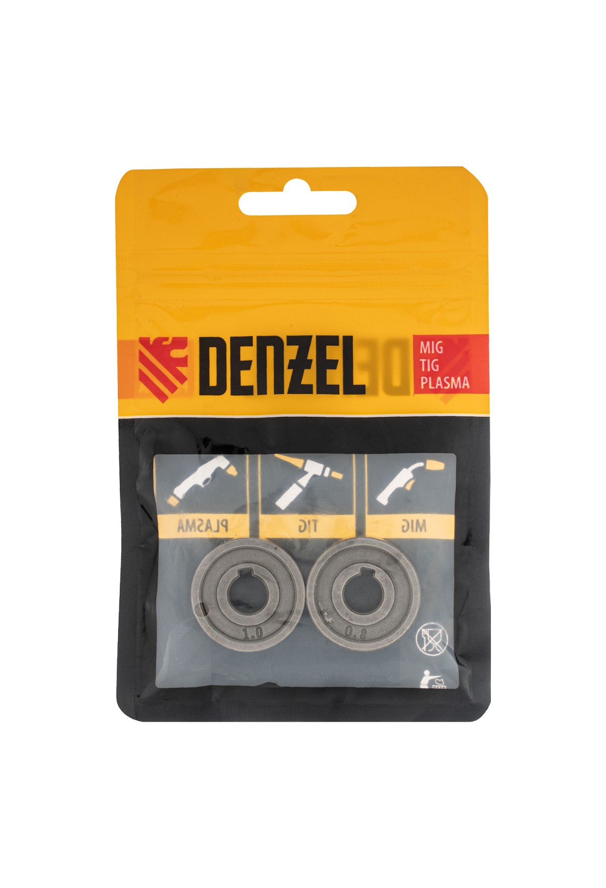Подающий ролик Denzel 93650 с V-профилем, 2 шт. в упаковке, — элемент конструкции сварочного аппарата, предназначенный для протягивания стальной проволоки диаметром 0,8-1 мм. Совместим с моделями Denzel 94313, 94314, 94361, а также со сварочными полуавтоматами других торговых марок.