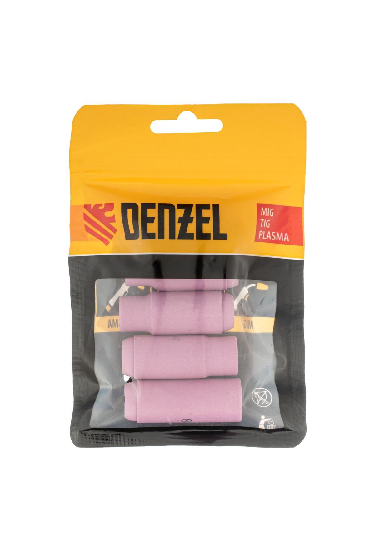Набор керамических сопел Denzel 93656 включает в себя оснастку № 4, 5, 6, 7, 8, предназначенную для формирования потока защитного газа во время проведения сварочных работ. Предотвращает поступление кислорода к свариваемому материалу и повышает качество сварного шва. Сопла совместимы с TIG-горелками Denzel 93643, 93644, а также с моделями других торговых марок с аналогичным посадочным разъемом.